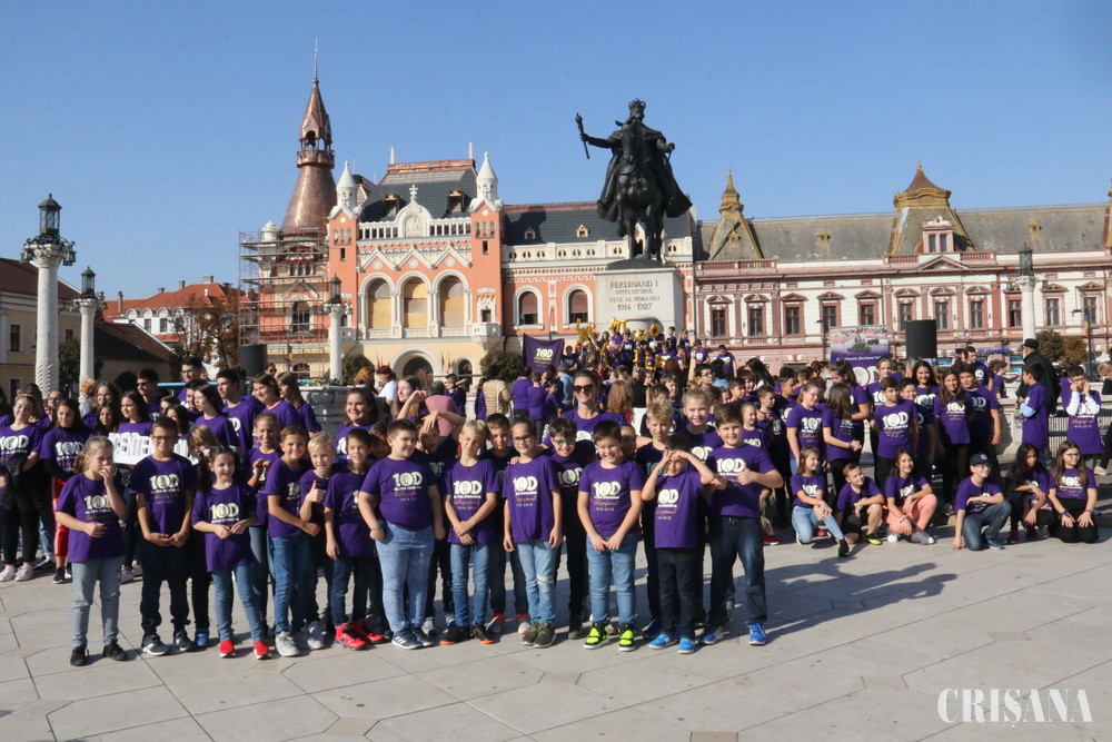 Orădenii care s-au plimbat ieri, în jurul amiezii, pe Republicii, au putut vedea sute de elevi de la Școala Gimnazială „Oltea Doamna” îmbrăcați în tricouri mov cu inscripția „100 Oltea Doamna – Tradiţie şi performanţă”. Elevii veneau de la un flashmob, care s-a desfășurat în Piața Unirii și la care au participat nu mai puțin de 900 de tineri. Împreună cu profesorii și directoarea Florina Muscă, copiii au dansat pe piesa „Can’t stop the feeling” interpretată de Justin Timberlake.