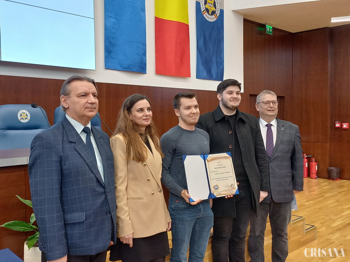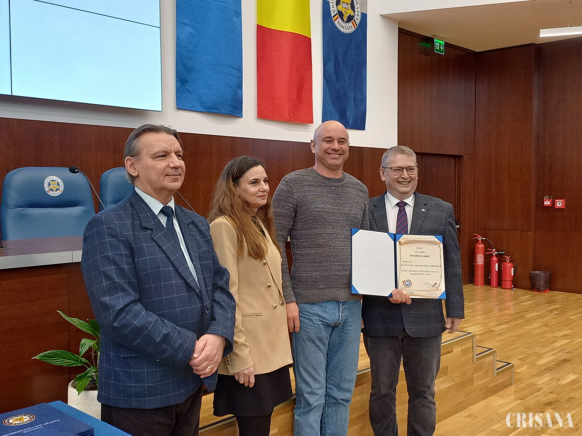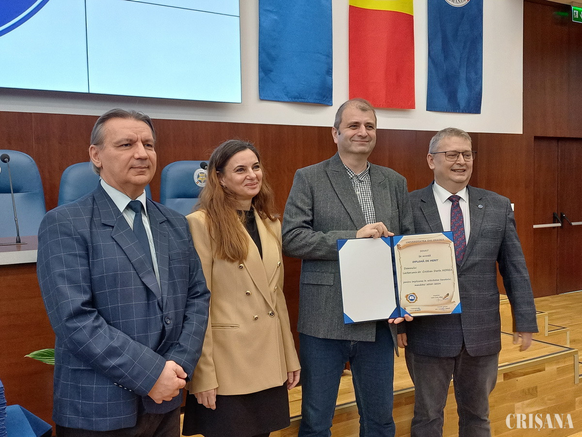 Președintele Senatului Universității din Oradea, împreună cu vicepreședintele, prof. univ. dr. Victoria Bogdan, și cu cancelarul general, conf. univ. dr. Ioan Țarcă, au înmânat Diplome de Merit, foștilor senatori.