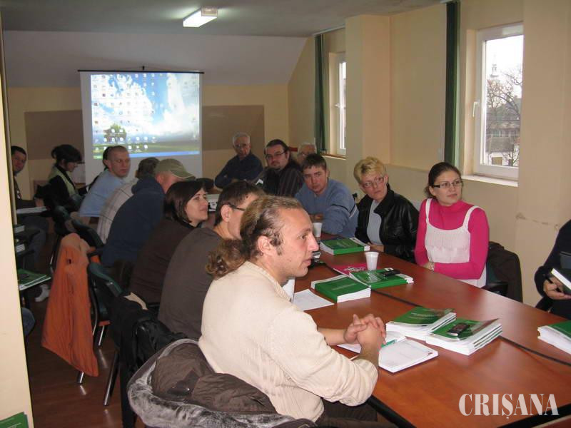 Pentru partea română au ţinut prelegeri ing. Miklos Nagy, preşedintele Asociaţiei judeţene şi vicepreşedintele pe ţară a Asociaţiei „Bioterra", secretarul proiectului, prof. dr. ing. Nicolae Csep, responsabil privind calitatea proiectului, prof. dr. ing. Cornel Domuţa, secretarul ştiinţific al Facultăţii de Protecţia Mediului.