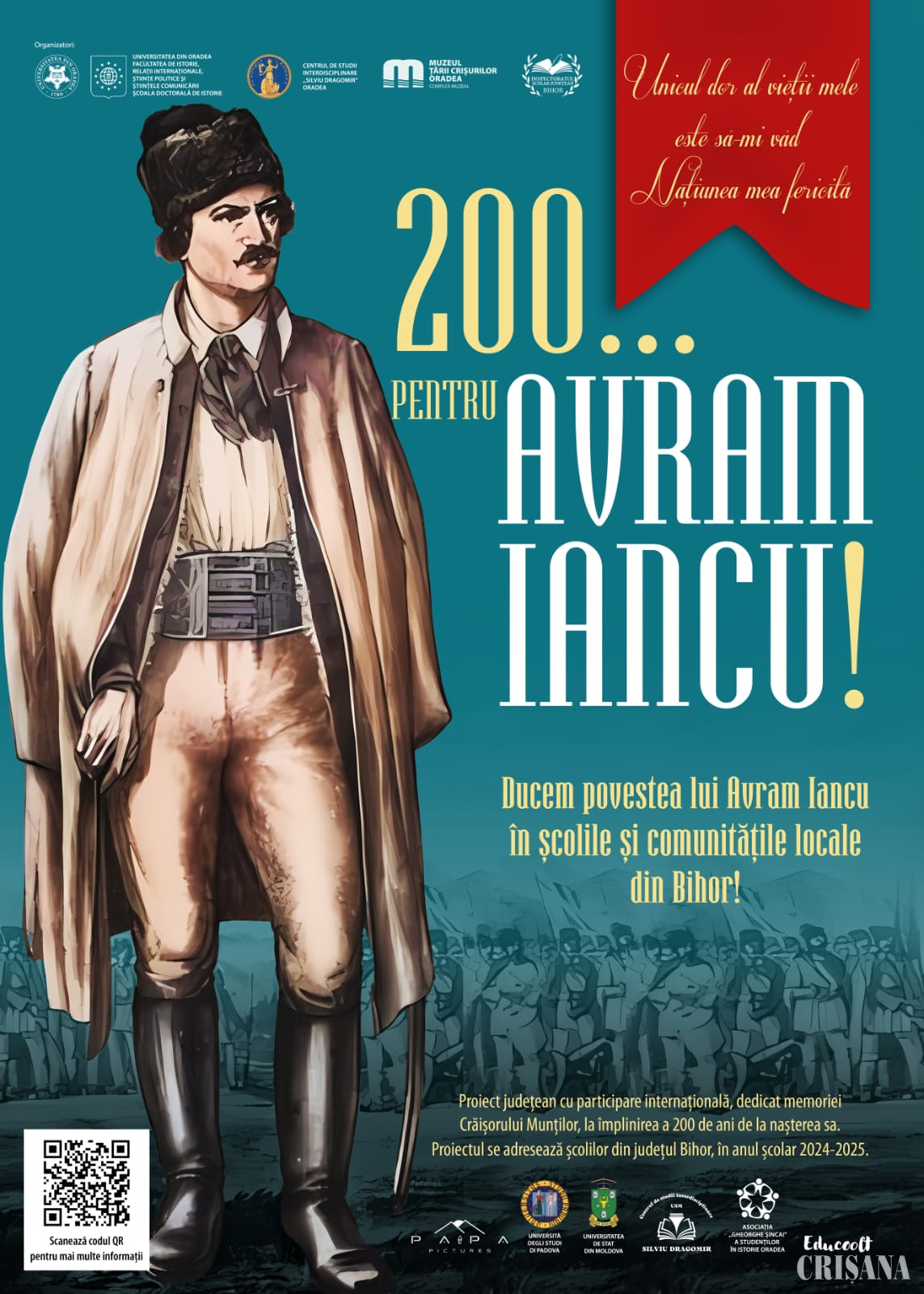 Proiectul „200... pentru Avram Iancu!” se adresează tuturor școlilor din Bihor, scopul lui fiind popularizarea imaginii Crăișorului Munților și a valorilor care i-au călăuzit viața, în rândul elevilor de gimnaziu și liceu.