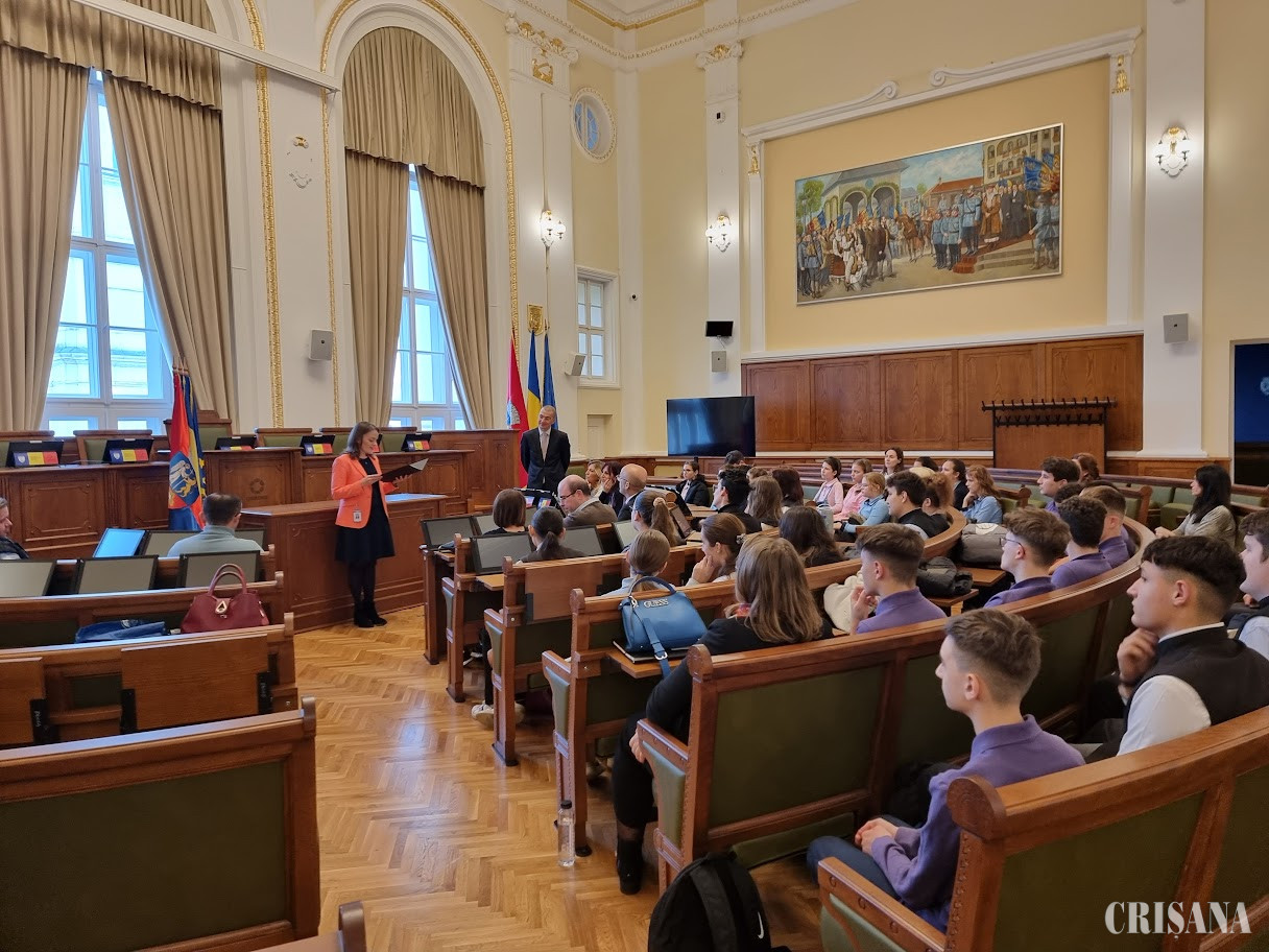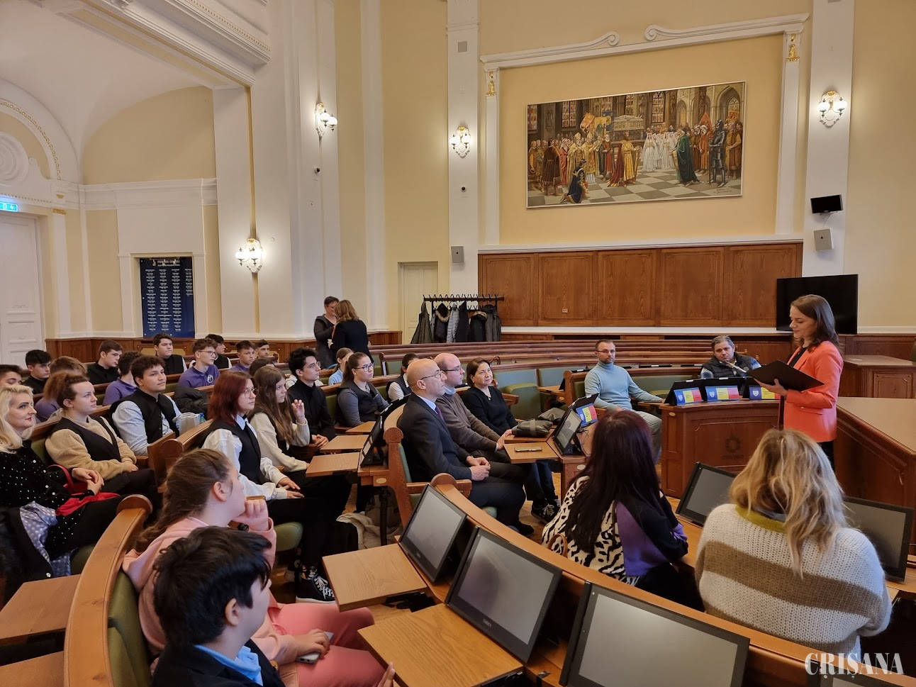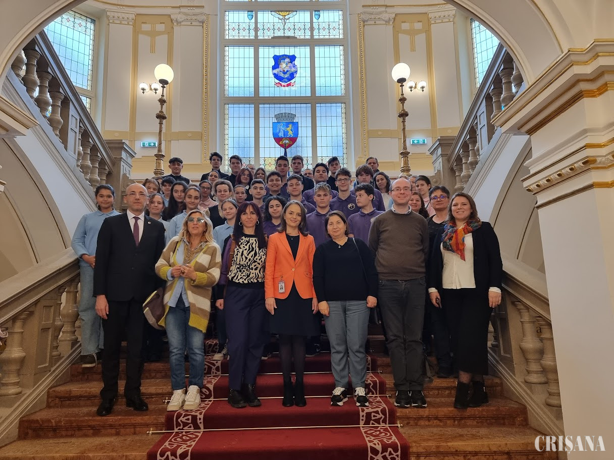 Cadrele didactice din Italia au fost însoțite în vizita la Primărie de un grup de elevi și profesori de la Liceul Ortodox.