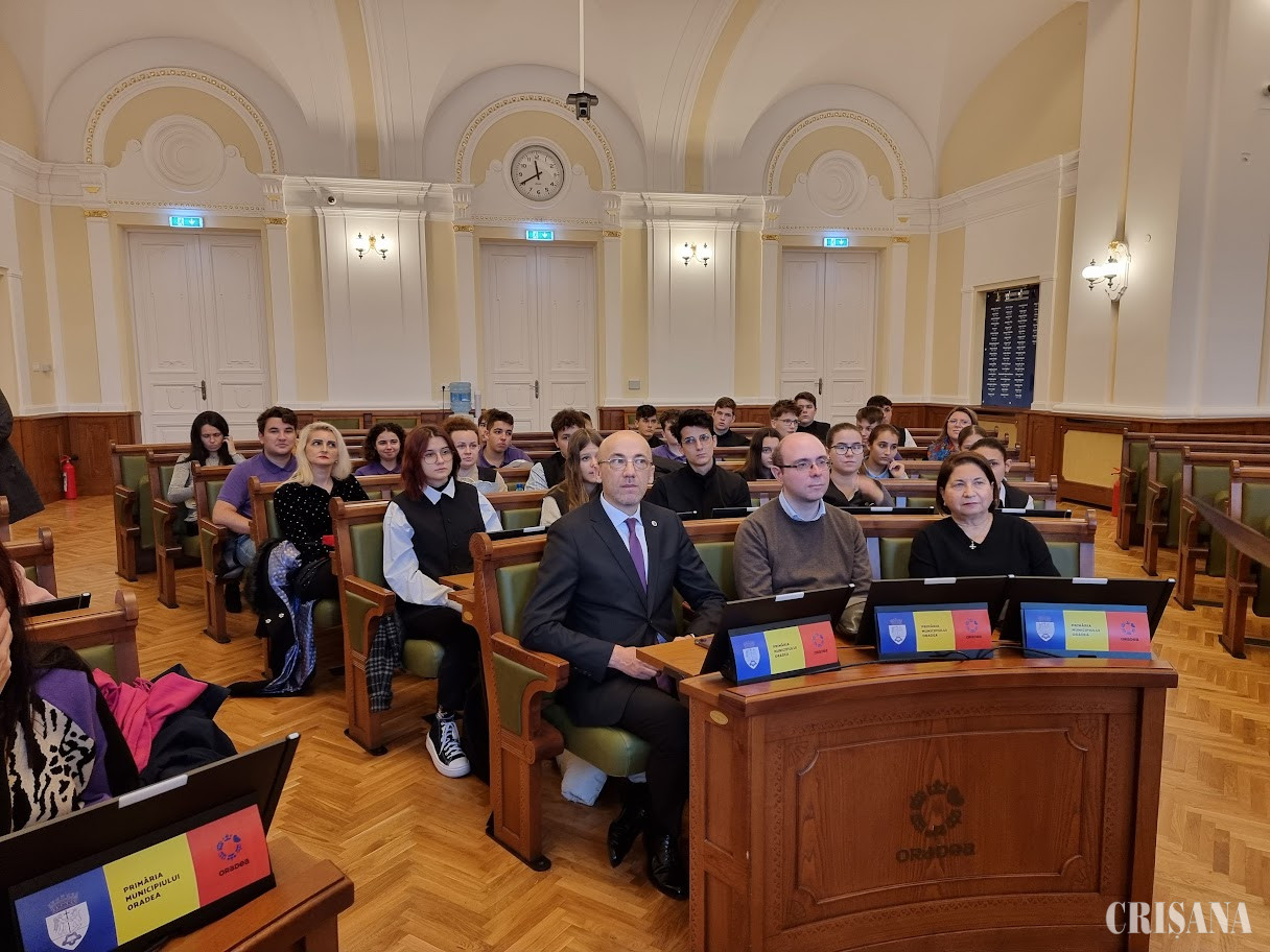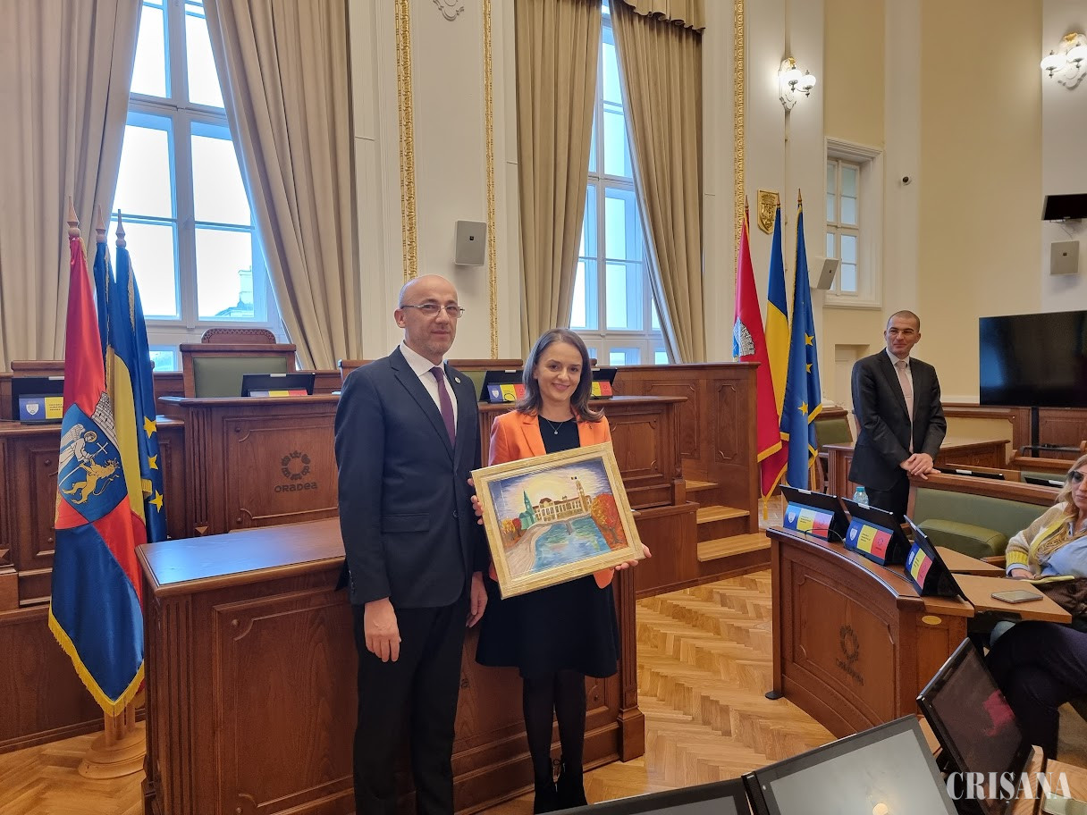 La finalul întâlnirii, elevii de la Liceul Ortodox i-au dăruit viceprimarului Antonia Nica un tablou pictat chiar de ei, cu imaginea Primăriei Oradea.