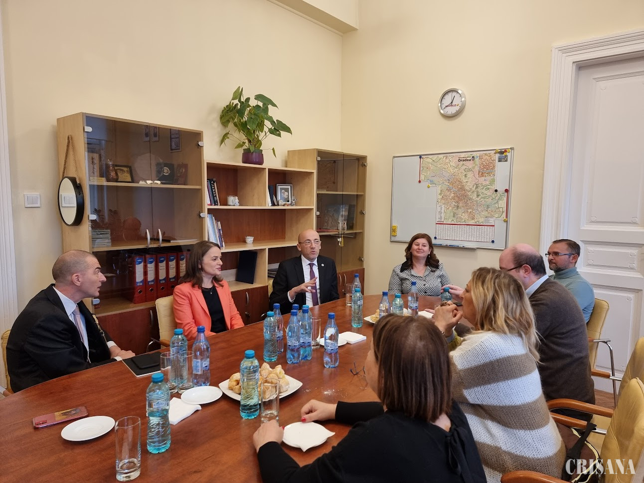 O delegaţie de profesori din orașul italian Gravina a vizitat miercuri, 16 noiembrie, Primăria Oradea. Oaspeţii au fost întâmpinaţi de noul viceprimar al municipiului, Antonia Nica.