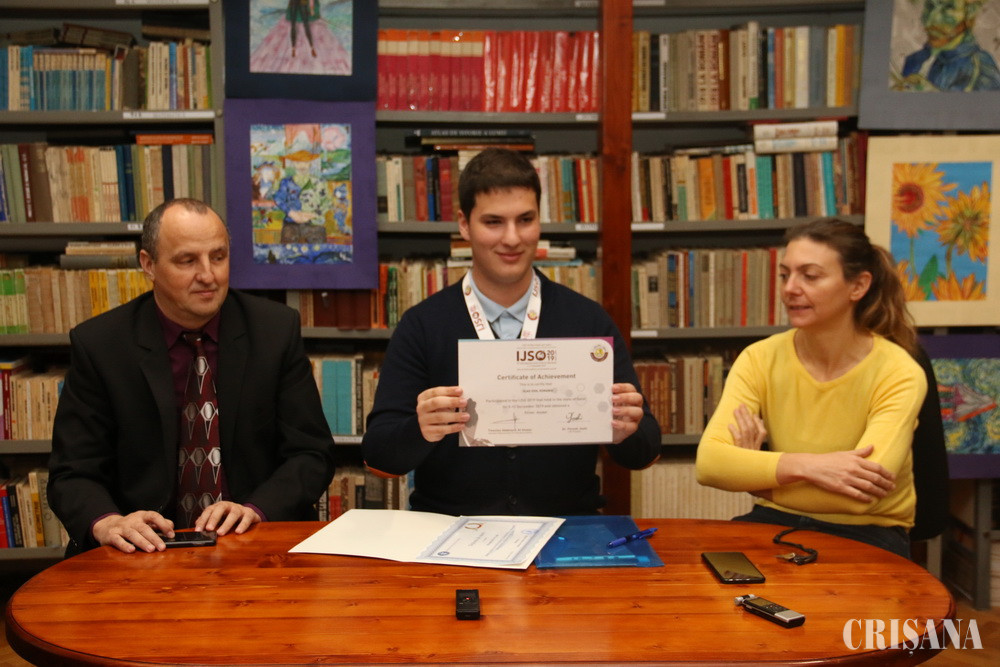 Medaliat cu argint, Vlad Iova a fost prezentat ieri, la ora 11.00, într-o conferință de presă desfășuată în Biblioteca Colegiului Național „Emanuil Gojdu” din Oradea.