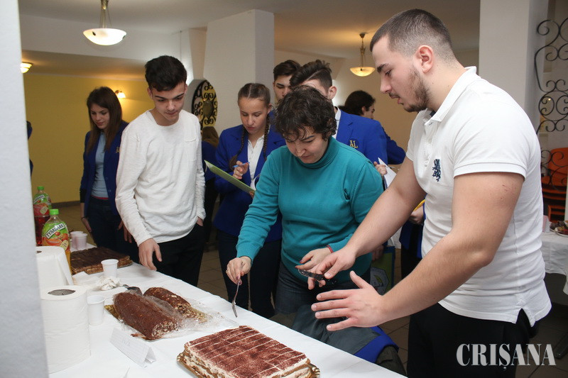 Timp de o oră și jumătate, elevii de la Aurel Lazăr au expus și donat prăjituri în cadrul unui concurs organizat de Ziua Școlii. Nu mai puțin de 54 de sortimente de prăjituri au trecut prin mâinile juriului format din prof. Olga Drăgan și elevii: Alin Stefancsik (clasa a X-a), Raluca Dumitru (clasa a X-a), Patricia Toia (clasa a XI-a) și David Vilciuc (clasa a IX-a). La final au venit și premiile: cea mai aspectuoasă prăjitură a fost făcută de elevii din clasa a XI-a C, cea mai gustoasă prăjitură – clasa a X-a D, cel mai bogat sortiment de prăjituri – Clasa a V-a, cea mai originală prăjitură – clasa a XI-a D și cel mai delicios tort – Clasa a XI-a B. După jurizare, elevii au avut ocazia să verifice dacă prăjiturile și-au meritat premiile. Profitul realizat prin „vânzarea” acestora va fi folosit pentru a ajuta cu alimente opt familii care au copii la Centrul Școlar pentru Educație Incluzivă „Orizont” Oradea, unitate școlară parteneră cu Liceul „Aurel Lazăr”.