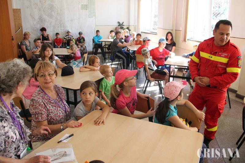 Copii cu vârste între trei şi nouă ani, înscrişi în tabăra de vară „Ceata lui Piţigoi", au vizitat ieri sediul ISU Crişana. Cei mai mici dintre orădeni au avut parte în prima parte a vizitei de o lecţie teoretică şi practică din care au aflat cum să se descurce în „situaţii de urgenţă" specifice vârstei lor. Astfel, copiii au aflat că înainte de a se scălda în zilele călduroase de vară este bine să se stropească mai întâi cu puţină apă, pentru a-şi obişnui corpul cu noua temperatură. În cazul în care se ard la mână, atunci când sunt neascultători şi „se joacă cu focul", primul lucru indicat este să-şi pună degetul sub apă rece. În cazul în care se taie, cei mici au fost sfătuiţi să bandajeze locul cu ce material textil curat au la îndemână, iar dacă le curge sânge din nas, pompierii i-au sfătuit să nu se întindă pe spate, pentru că se pot îneca cu sângele. Cea mai bună soluţie este să stea în picioare şi să se ţină de nas. Nu în ultimul rând, atunci când observă că un coleg s-a înecat, cu mâncare sau cu apă, este bine să-l ajute să se aplece în faţă, să-l bată pe spate şi să-l îndemne să tuşească. Sfaturile simple şi pe înţelesul tuturor i-au încântat pe micuţi, care au fost pregătiţi apoi pentru misiuni mai importante. Astfel, prichindeii au inspectat maşinile de pompieri, au aplaudat exerciţii spectuloase şi au încercat să fie pompieri la rândul lor, mânuind pistolul cu apă. Tabăra „Ceata lui Piţigoi" a început în data de 24 iunie şi este un proiect desfăşurat la iniţiativa ing. Mioriţa Săteanu, preşedinta onorifică a UFB (coordonator de proiect). Încă din primele zile, copiii au fost implicaţi în activităţi recreative şi creative, de la dansuri şi jocuri muzicale, la pictură şi origami. Pe lângă aceste activităţile specifice din orăşel însă, în fiecare vineri copiii vizitează sediul fiecărei instituţii importante din oraş.