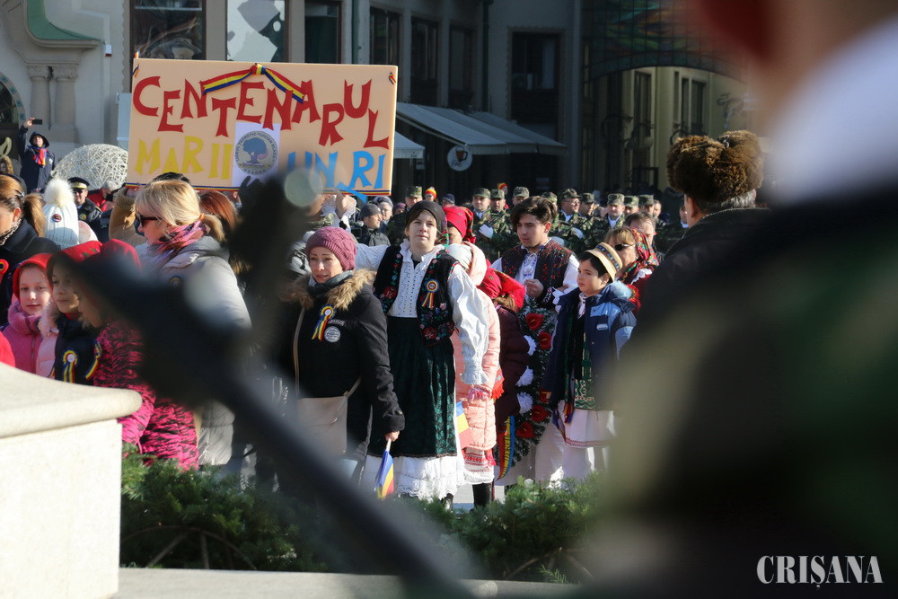 Orădenii au ieşit din case, în ciuda temperaturilor scăzute, pentru a sărbători Centenarul Marii Uniri. Copii, tineri şi vârstnici cu drapele, panglici şi concarde au animat oraşul pe tot parcursul zilei de 1 Decembrie, participând la festivităţile dedicate acestui moment istoric.