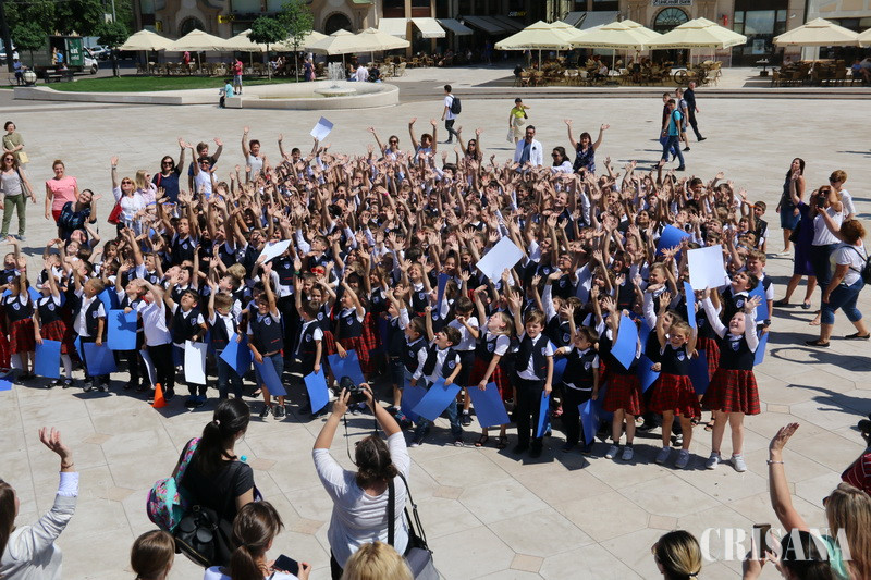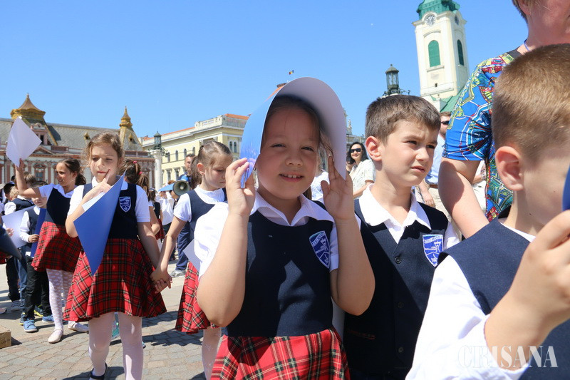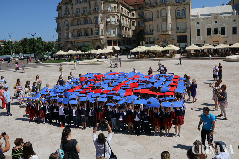Peste 400 de copii din clasele pregătitoare - IV de la Liceul Greco-Catolic „Iuliu Maniu” au realizat ieri un impresionant flashmob în Piața Unirii din Oradea. Evenimentul a deschis seria de manifestări dedicate aniversării a 100 de ani de la Marea Unire, 25 de ani de la (re)înființarea Liceului și 20 de ani de funcționare în alternativa educațională Step by Step.