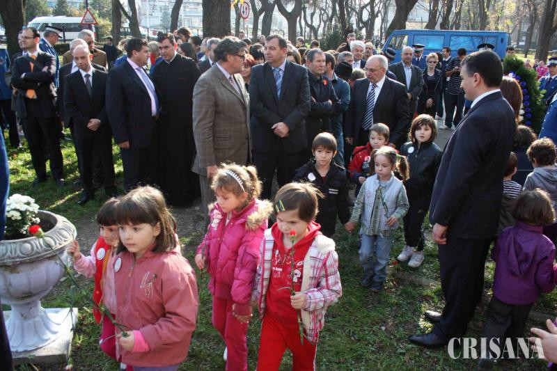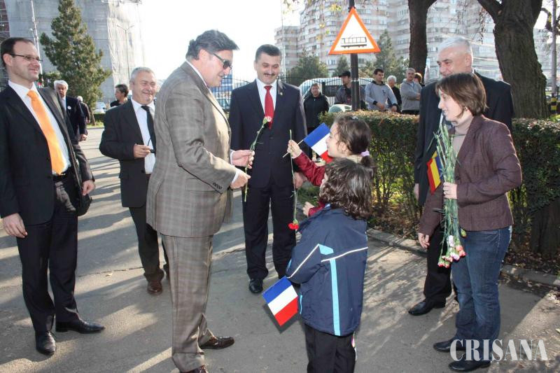 Programul a debutat cu intonarea imnurilor de stat ale Franţei şi României, urmată de alocuţiunea Excelenţei Sale Henri Paul, ambasadorul Franţei în România, care şi-a manifestat, cu acest prilej, bucuria de a se afla în oraşul nostru. "Azi, Oradea uimeşte prin frumuseţea mediului, a monumentelor şi prin energia creativă a locuitorilor săi", a spus ambasadorul, menţionând că Franţa este o prietenă profundă a României, susţinând-o atunci când este necesar. "Această sărbătoare este o ocazie de a reafirma prietenia între cele două popoare. Trăiască Oradea! Trăiască România! Trăiască Franţa!", a conchis ambasadorul. În continuare, a luat cuvântul Radu Ţîrle, preşedintele CJ Bihor, care a salutat prezenţa ambasadorului Franţei în judeţul nostru, după care a amintit domeniile asupra cărora s-a stabilit colaborarea pe viitor cu partea franceză. În final, preşedintele CJ Bihor şi-a manifestat speranţa că Franţa va susţine intrarea României în Spaţiul Schengen. "România trece printr-o perioadă grea. Franţa a fost întotdeauna alături de noi, iar în acest moment dificil avem nevoie să fim susţinuţi pentru a adera la Spaţiul Schengen. Nu mă îndoiesc că acest sprijin va veni din partea Franţei, că semnalul pe care Excelenţa sa îl va da acolo unde trebuie va fi cel dorit", a spus şi prefectul Gavrilă Ghilea. În continuare, gen. maior (r) Nichi Virgil a susţinut un discurs în limba franceză, după care a urmat ceremonia de depuneri de flori şi coroane de flori la Monumentul Eroilor Francezi, punctul final al manifestărilor reprezentându-l programul artistic susţinut de Grupul vocal "Allegria", de la Şcoala "Avram Iancu" din Oradea. Moderatorul întregului program a fost prof. univ. dr. Sever Dumitraşcu, directorul Departamentului Cultură în cadrul Fundaţiei Franco-Române Oradea. Evenimentul s-a bucurat de o largă audienţă, formată din reprezentanţi ai Asociaţiei Naţionale a Veteranilor de Război - Filiala Bihor, în frunte cu Roman Dumitru, general de brigadă în retragere; ai Inspectoratului de Jandarmi Judeţean Bihor; ai Asociaţiei Naţionale "Cultul Eroilor" - Filiala Bihor; ai ANCMRR - Filiala Bihor, în frunte cu conf. univ. dr. Vasile Creţ, preşedintele Asociaţiei, şi cu col. (r) Tatar Zoltan, secretarul executiv al Asociaţiei, colonelul Viorel Buhaş, comandantul Garnizoanei Oradea etc. Cea mai mare parte a fost formată însă din elevi, profesori, dar şi preşcolari, care au venit atât din Oradea, cât şi din judeţ pentru a participa la program. Este vorba de elevi de la Şcolile cu clasele I-VIII "Avram Iancu" şi nr. 16, din Oradea, Liceul Teoretic "Onisifor Ghibu", Colegiul Economic "Partenie Cosma", Colegiul Tehnic "Constantin Brâncuşi", Liceul cu Program Sportiv Bihorul, Liceul Teoretic "Aurel Lazăr", GPP nr. 49, Colegiile Naţionale "Iosif Vulcan", "Emanuil Gojdu" şi "Mihai Eminescu", din Oradea, respectiv de elevii din clasa a VIII-a A, de la GRI Suplacu de Barcău, însoţiţi de directorul şcolii, Octavian Tripon, primarul comunei, Nicolae Tivadar, şi de profesoara de liumba franceză Laura Razi.