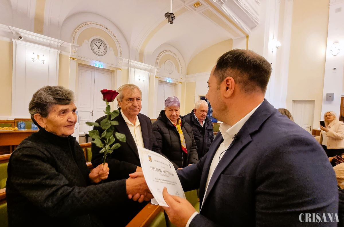 În cadrul festivității, fiecare cuplu a primit o diplomă aniversară, flori și un premiu în valoare de 1.000 de lei, oferite de Primăria Oradea.