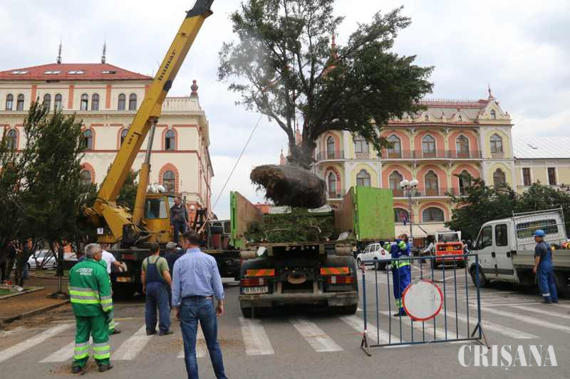 Primăria Oradea anunţa la momentul toaletării tiselor din faţa Teatrului de Stat Oradea, în 12 aprilie, că, după această măsură, spre finalul lunii aprilie, arborii vor fi relocaţi efectiv în Parcul 1 Decembrie. Acest lucru s-a întâmplat azi, operaţiunea de mutare derulându-se la orele prânzului. Scoaterea din pământ a primului arbore a durat aproximativ o oră, reprezentanţii Primăriei neputându-se pronunţa dacă vor fi relocaţi toţi într-o singură zi sau va fi o procedură ce va dura mai multe zile.