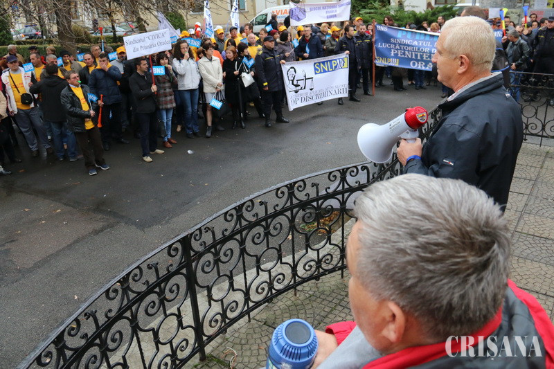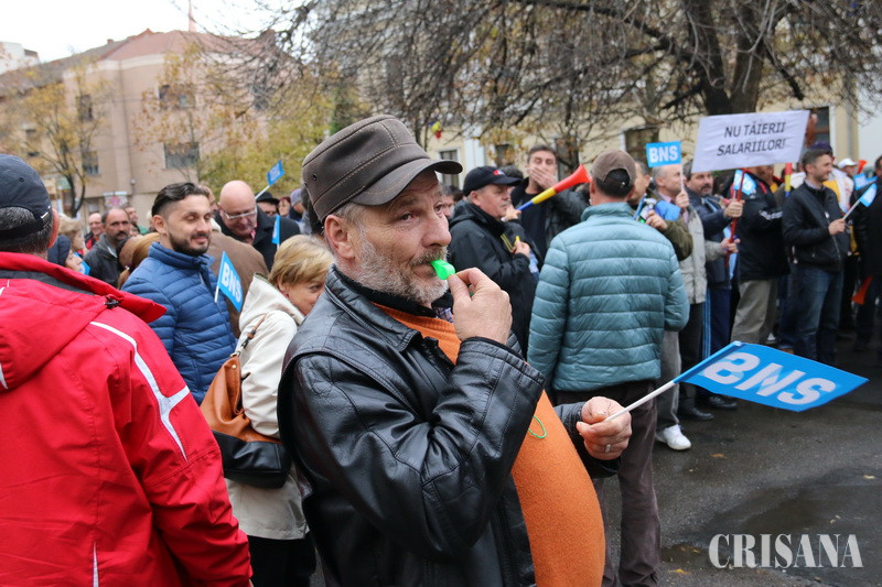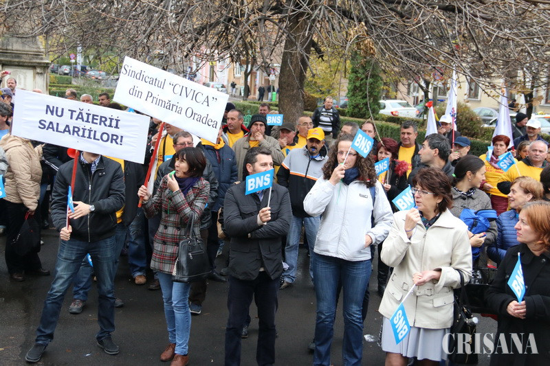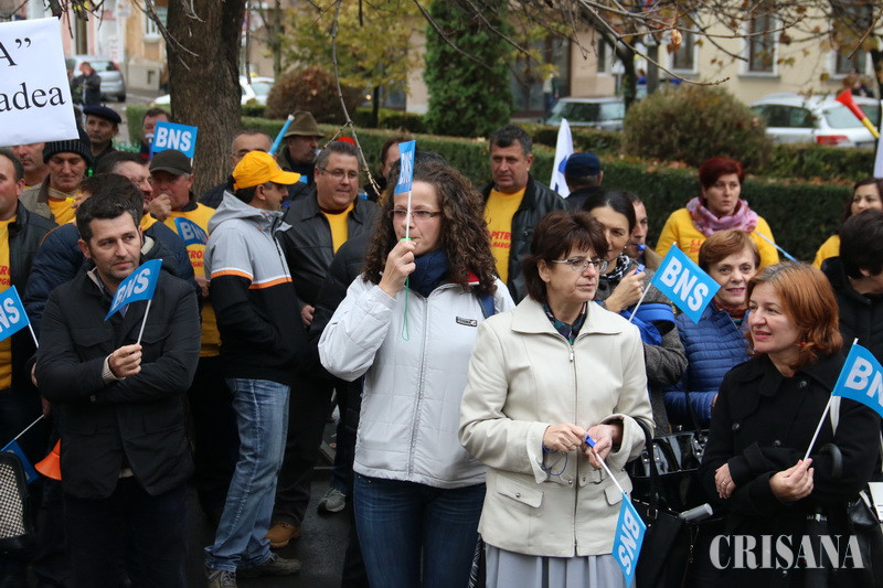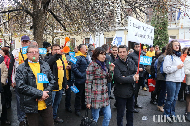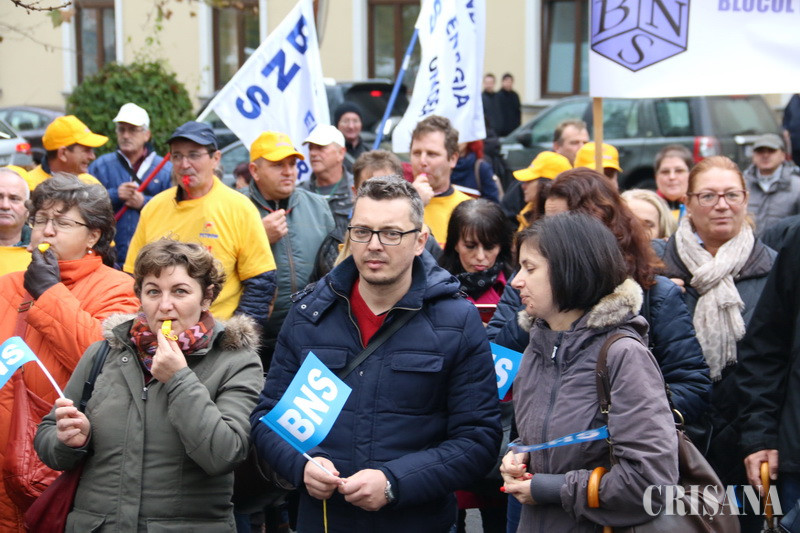 Protestatari din Sindicatele Energetica, UAMT, Petrom, Electrocentrale, Penitenciare, administraţie publică sau sănătate au scandat ieri, timp de o oră şi jumătate, în Parcul Traian, principala lor nemulţumire fiind trecerea contribuţiilor sociale de la angajator la angajat, începând cu 1 ianuarie 2018. „Nu avem certitudinea că patronii vor mări salariul brut. De ce nu s-a dat o lege care să oblige angajatorul să mărească brutul, pentru că unii vor majora, alţii, ba. Şi mai mult, chiar dacă vor face acest lucru, e vorba de majorări salariale nete de 2 lei. Apoi, ce se întâmplă dacă angajatorul nu va vira statului contribuţia aferentă angajatului şi ne vom trezi cu contribuţiile la pensii şi sănătate neachitate. Suntem singurul stat din lumea civilizată unde contribuţiile nu sunt suportate de angajator, ci de angajat”, preciza liderul BNS Bihor, Nicolae Morgovan, în faţa protestatarilor, care scandau „Ruşine!”, „Ruşine”. De asemenea, liderul BNS a pus accent pe o altă mare durere a românilor din ultima vreme, şi anume cea a majorării preţului alimentelor. „A scăzut TVA-ul la alimente, au spus că va scădea şi preţul la raft. Dimpotrivă. În loc să fie aşa, preţul alimentelor a explodat”, afirma Nicolae Morgovan. La rândul său, Corneliu Fofiu, secretar general în cadrul BNS Bihor, a precizat că, prin măsurile propuse, Guvernul încurajează nemunca. „Vom fi o ţară de asistaţi sociali”, a spus acesta. O delegaţie de sindicalişti, condusă de liderul BNS Bihor, Nicolae Morgovan, a urcat la prefectul Ioan Mihaiu şi a comunicat revendicările, acesta asigurându-i că le va transmite Guvernului. Protestul de la Oradea va fi urmat de alte mişcări de protest în ţară şi va culmina cu un miting la Bucureşti sau chiar cu declanşarea grevei generale.
