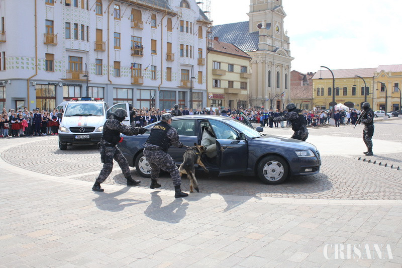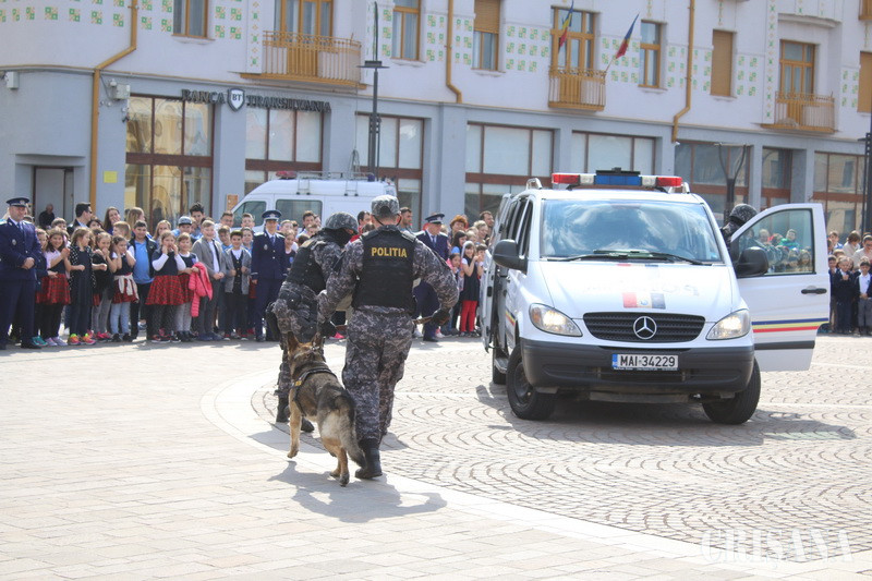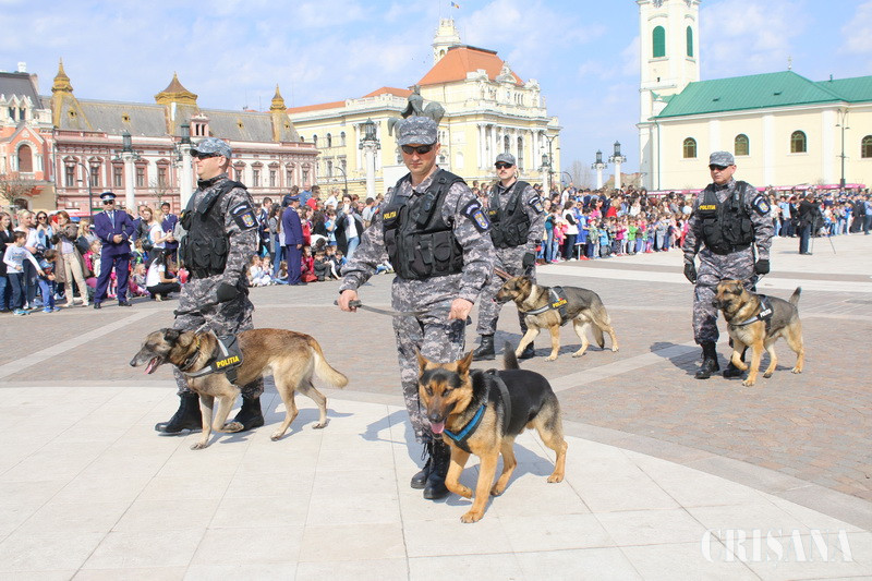 Manifestările dedicate Zilei Poliţiei Române, marcată în fiecare an în data de 25 martie, au fost organizate, ieri, la Oradea. Acestea au debutat cu o şedinţă festivă, organizată la Inspectoratul de Poliţie Judeţean Bihor, în cadrul căreia au avut loc avansările la termen şi înainte de termen, au fost recompensaţi poliţiştii cu merite deosebite şi s-a acordat titlul de “Poliţistul anului”. Au urmat apoi evenimentele publice din Piaţa Unirii, sute de orădeni urmărindu-i pe poliţişti şi pe câinii de serviciu şi asistând la demonstraţiile luptătorilor din cadrul Serviciului de Acţiuni Speciale.