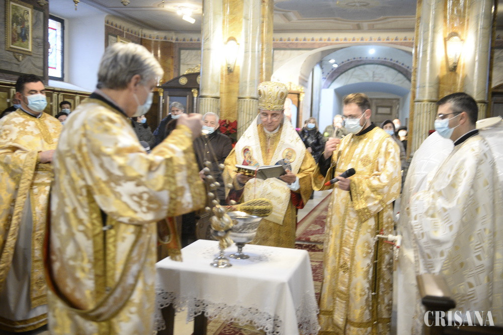 Și la Catedrala greco-catolică „Sfântul Nicolae” din Oradea, evenimentul liturgic s-a desfășurat cu respectarea regulilor impuse de pandemie, iar la toate intrările s-au găsit dezinfectante. Preotul Ovidiu Duma, parohul Catedralei, ne-a declarat că Sfințirea Mare a Apei s-a făcut în cadrul Liturghiei Arhierești, de către Preasfinția Sa Virgil Bercea, episcopul greco-catolic de Oradea, înconjurat de un sobor de preoți. „Am pregătit în jur de 1.400-1.500 de litri de apă”, a precizat părintele Ovidiu Duma.