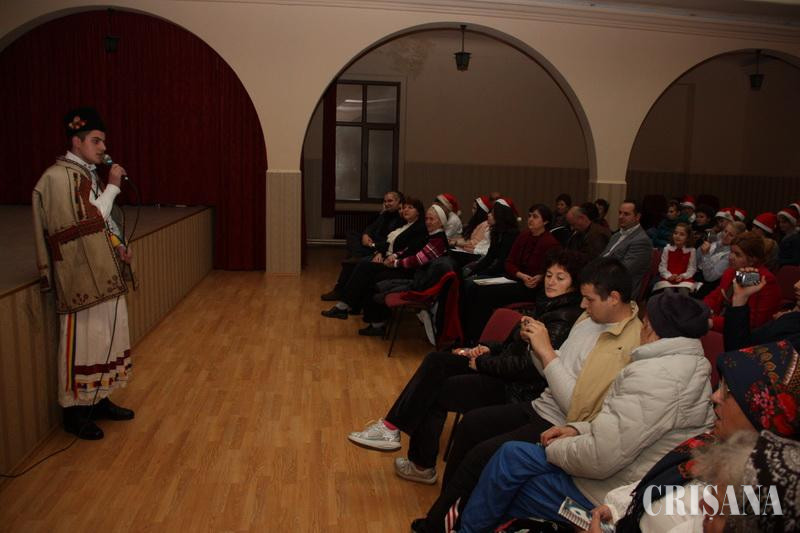 Programul a fost deschis de Bogdan Abagiu, de la Centrul de Scleroză Multiplă Oradea, care a interpretat două colinde româneşti, urmat de Andrei Corb, elev în clasa a VIII-a la Şcoala din Corbeşti, comuna Ceica. Şi evoluţia micuţei Patricia Şandor, elevă la Şcoala nr. 16 din Oradea, a fost răsplătită cu aplauze furtunoase de către toţi cei prezenţi. Trupa „Vulcanicii", a Colegiului Naţional „Iosif Vulcan" Oradea, coordonaţi de prof. Sânziana Neşiu, a pregătit un colaj de colinde tradiţionale şi poezii, în limbile română şi engleză. Emoţionant a fost şi momentul susţinut de rapsodul popular Ana Codrean din Sânnicolau Român, care a prezentat colinde autentice specifice zonei, dar şi cel prezentat de învăţătoarea Maria Matei din Sânmartin.