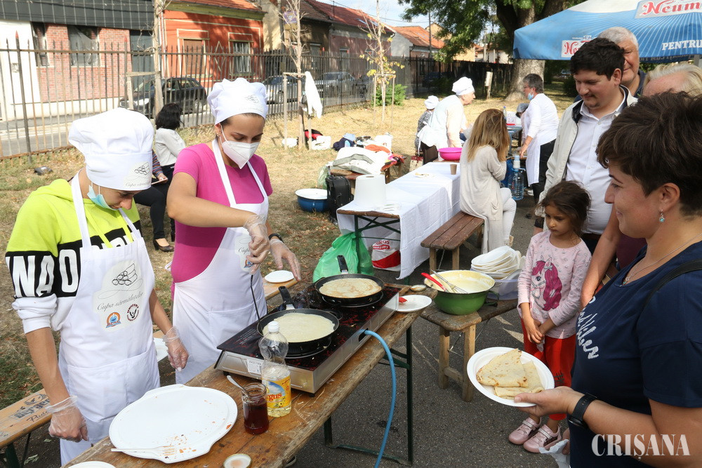 Imediat după startul concursului, în timp ce se găteau sarmalele, au fost pregătite și primele clătite care au fost degustate de participanții la eveniment.