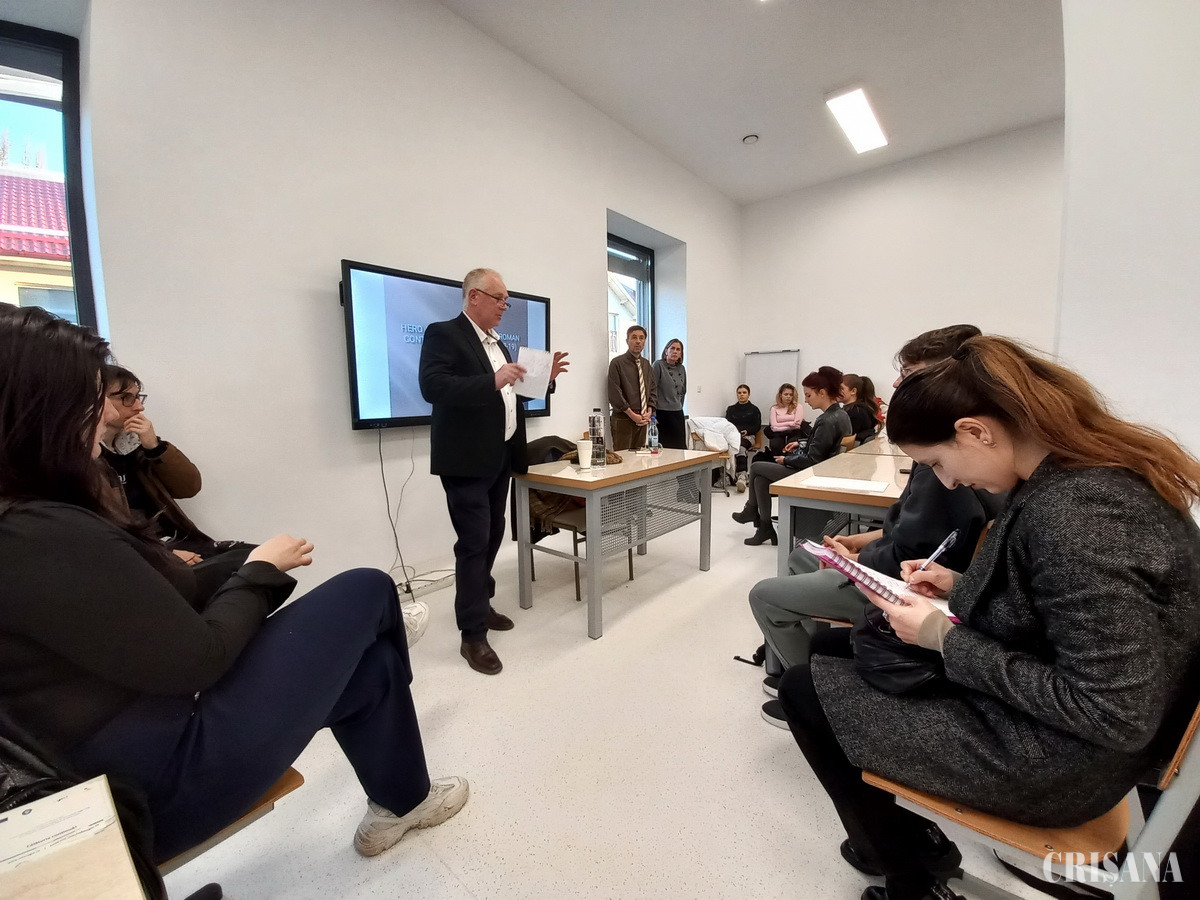 Sala de curs în care a conferențiat, miercuri, 22 noiembrie, profesorul Vaios Vaiopoulos, de la Universitatea din Atena, a fost plină. Atât de plină încât câțiva studenți ai Facultății de Istorie, Relații Internaționale, Științe Politice și Științele Comunicării (FIRISPSC) a Universității din Oradea au urmărit conferința stând în picioare.