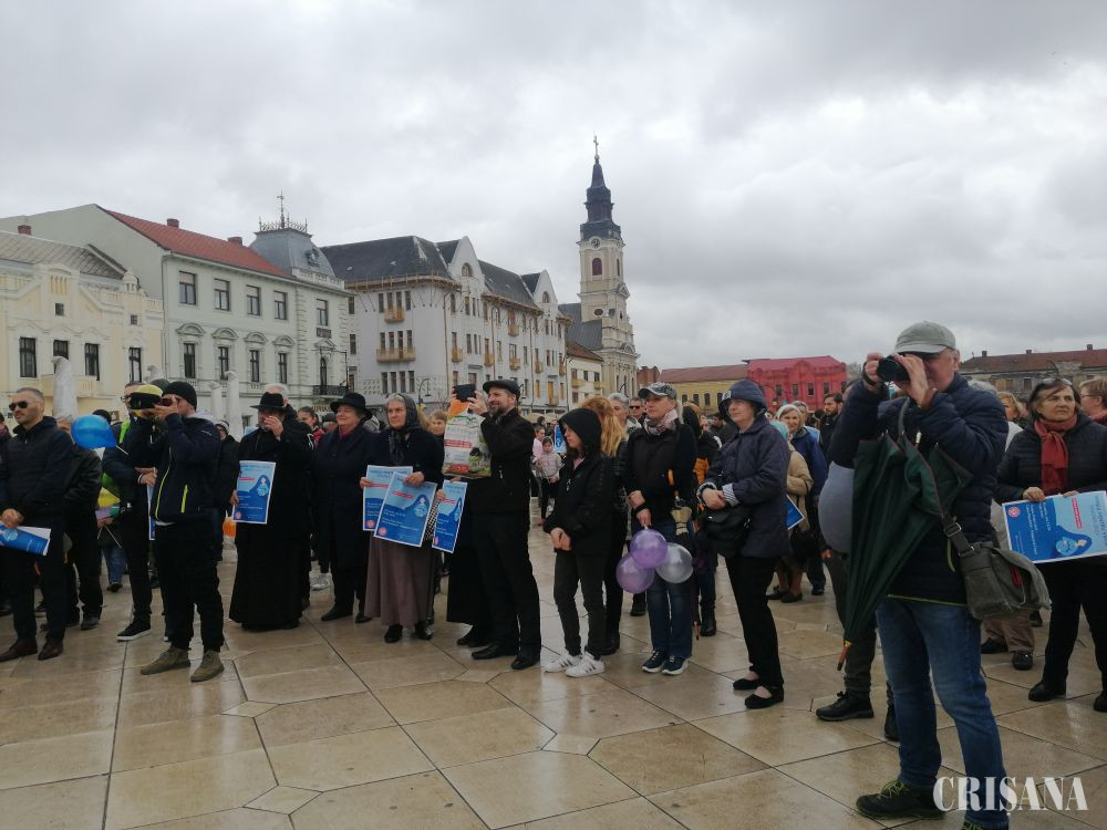 Înainte de ora 14.00, în sunet de fanfară, și supravegheați de polițiști și jandarmi, participanții la marș au pornit din Piața Unirii spre Calea Republicii, unde, lângă Biserica romano-catolică „Pogorârea Sfântului Duh”, a fost rostită o rugăciune. Punctul final al manifestării a fost pe platoul din fața Centrului comercial Crișul, unde au luat cuvântul: Viorica Dogar, din partea Bisericii Penticostale; Matyas Attila, preot paroh la Biserica Evanghelică Luterană; dr. Daniela Leuce; Lidia Dan și Miorița Săteanu.