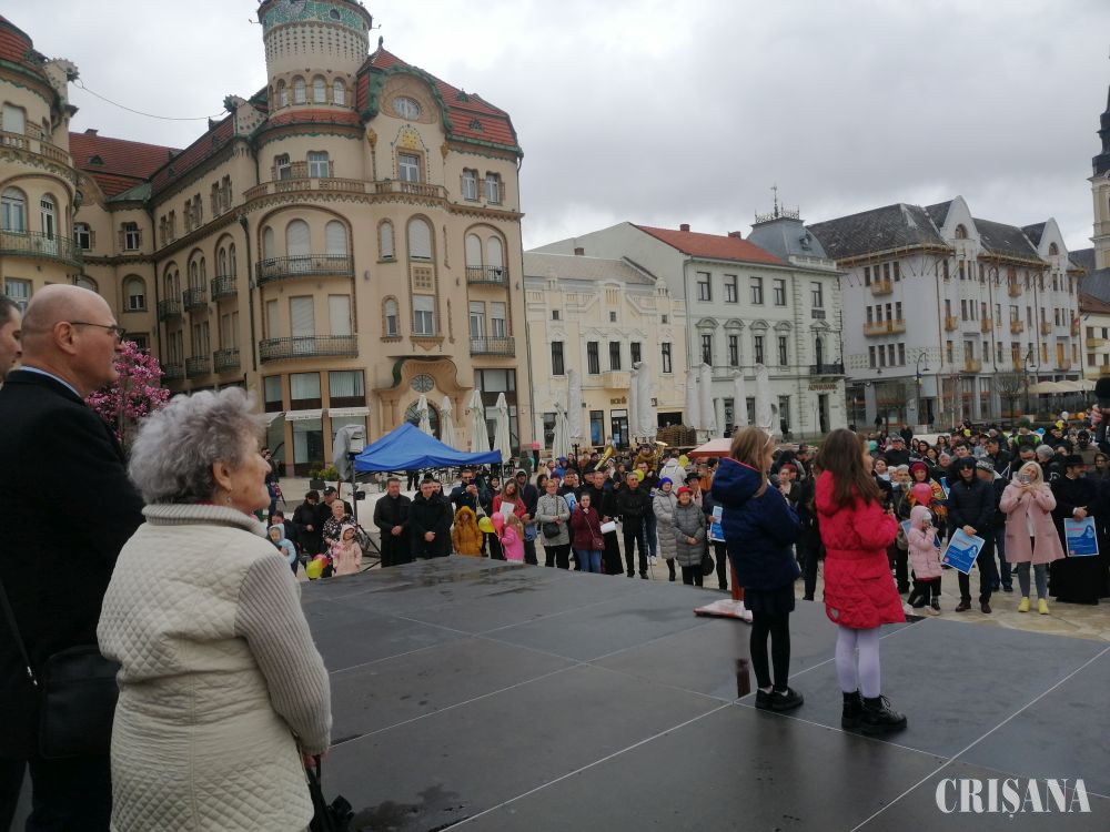 Pe scena din Piața Unirii a urcat apoi Corul de copii „Enjoy Music” al Bisericii Greco-Catolice din Oradea, urmat de eleva Cristina Felappi, care a interpretat un cântec închinat Divinității.