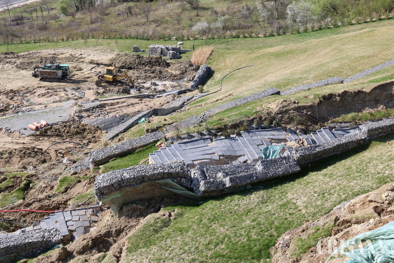 Unele dintre lucrări vor fi încredinţate direct, iar pentru altele, cu o valoare de execuţie mai mare, vor trebui organizate licitaţii. Într-o primă fază, care va dura 30 de zile, vor fi rigidizate fundaţiile şi executate drenurile de adâncime, etapă pentru care este prevăzută suma de 246.995 lei. Faza a doua a lucrărilor de refacere, ce va dura aproximativ o lună jumătate, prevede realizarea unui prim rând de piloţi de susţinere foraţi la cota 167,5 m, în acest sens fiind prevăzută suma de 466.956 lei, fără TVA. Într-o ultimă fază, va fi realizat un alt rând de piloţi de susţinere, de această dată la cota 177,5 m, etapă care va dura aproximativ două luni şi va costa peste 900.000 lei.
