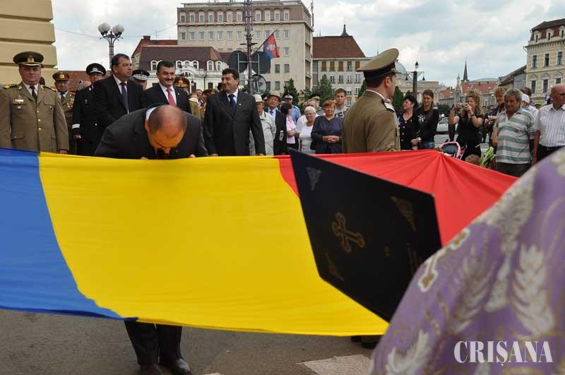 În prezenţa a zeci de orădeni, a unor vizitatori aflaţi ieri prin zona centrală a oraşului şi a oficialităţilor locale, ieri a avul loc ceremonialul de arborare a drapelului naţional, cu prilejul sărbătoririi Tricolorului românesc. Ziua Drapelului Naţional a debutat cu o slujbă de sfinţire oficiată la Biserica cu Lună, după care, în faţa Primăriei Oradea, a avut loc un ceremonial militar.