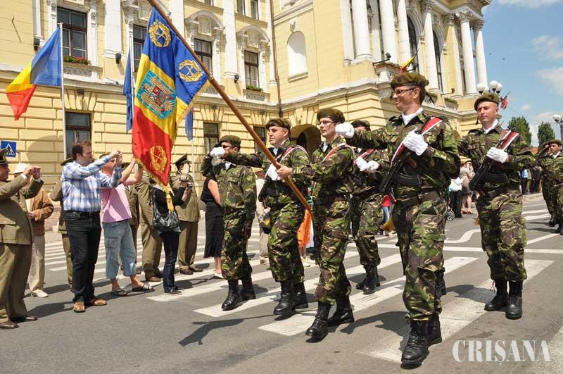 Ieri, Ziua Drapelului Naţional a fost sărbătorită şi de către orădeni. Evenimentul a debutat cu o slujbă religioasă oficiată la Biserica cu Lună. „Steagul semnifică libertatea pentru tot poporul român. Cei care se uită cu cinstire la el vor fi umpluţi de bucurie", a declarat preotul militar Mircea Ioniţă. Steagul României a fost sfinţit de către un sobor format din patru preoţi, după care a fost înmânat prefectului judeţului Bihor, Gavrilă Ghilea. Steagul a fost apoi scos din biserică şi purtat de Garda Port Drapel până în faţa Primăriei Oradea, unde a avut loc ceremonialul militar. Acesta a cuprins prezentarea onorului, salutul drapelului de luptă, ocuparea locului în dispozitiv, precum şi rostirea de alocuţiuni de către prefectul Gavrilă Ghilea şi g-ral bg. (r) Vasile Creţ, preşedintele Asociaţiei Naţionale a Cadrelor Militare în Rezervă şi în Retragere - Filiala Bihor. „Drapelul este martorul sacrificiilor noastre ca naţiune. Acest simbol i-a unit sub acelaşi ideal pe ardeleni, moldoveni şi munteni. Steagul ne-a dat verticalitate, ne-a îmbărbătat în momentele de cumpănă", a precizat Gavrilă Ghilea, prefectul judeţului Bihor. A urmat tradiţionalul moment al sărutului drapelului de către oficialităţile prezente. Dacă Ilie Bolojan, primarul Oradiei, a omis să îmbrace eşarfa tricoloră, o atitudine mai sfidătoare au avut membrii UDMR, care au lipsit şi de această dată de la ceremonial. „La Cluj niciun reprezentant UDMR nu îndrăzneşte să lipsească de la niciun eveniment legat de simbolurile naţionale. Din păcate, aici se pare că li se permite acest lucru", ne-a declarat Mariana Costinaş. A urmat înălţarea steagului pe catargul din faţa Primăriei Oradea şi intonarea Imnului naţional de către corul Şcolii de Pregătire a Agenţilor de Poliţie de Frontieră „Avram Iancu" Oradea. Ceremonialul s-a încheiat cu defilarea militarilor Centrului 54 RMNC, a agenţilor Inspectoratului Judeţean de Jandarm Bihor şi a Inspectoratului pentru Situaţii de Urgenţă.