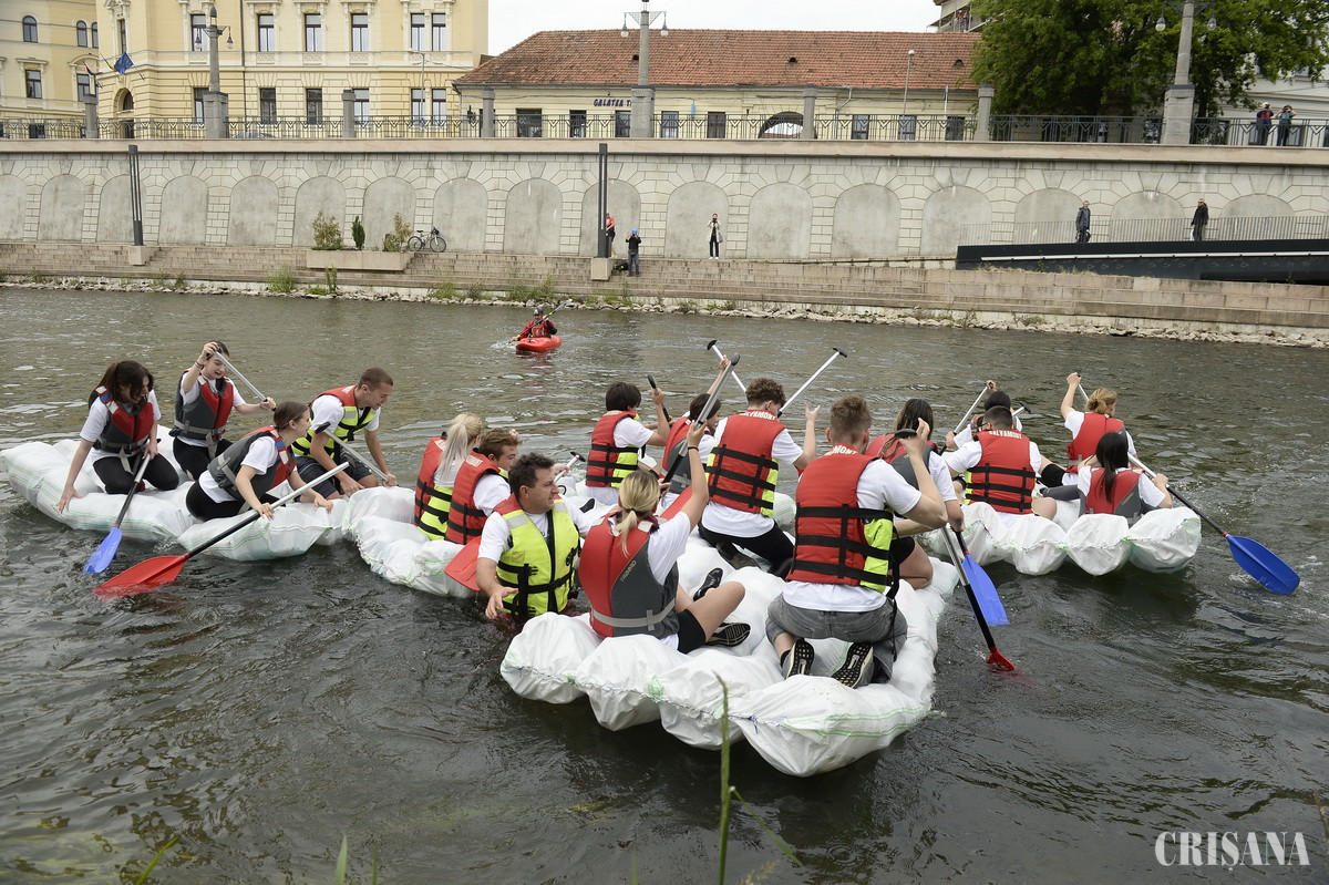 Înarmați cu vâsle și veste de salvare, 20 de elevi de la Liceul Teoretic German „Friedrich Schiller” Oradea, în frunte cu profesorul de educație fizică Ciprian Sirca, au navigat ieri, pe apele Crișului Repede, în cadrul tradiționalului eveniment, intitulat „Duși cu pluta”.