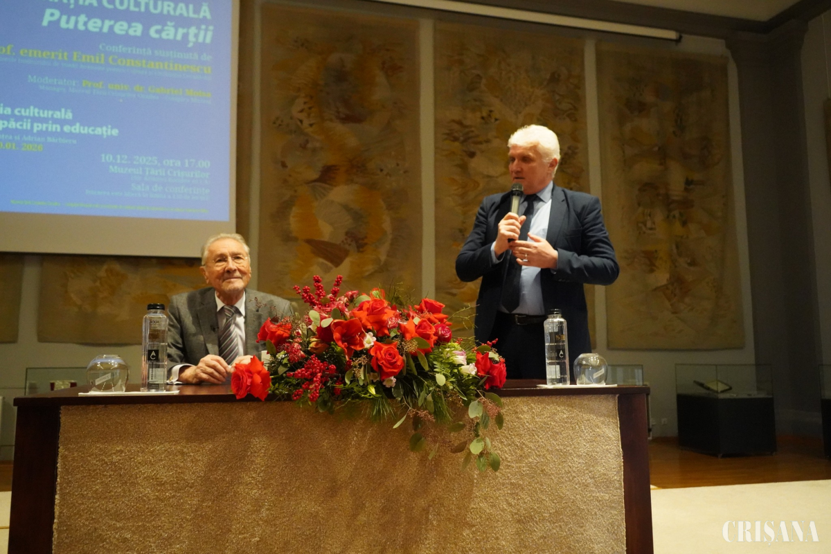 Muzeul Țării Crișurilor din Oradea a găzduit miercuri, 10 decembrie, un eveniment de excepție, în cadrul „Colocviilor Muzeului Țării Crișurilor”: conferința „Diplomația culturală. Puterea cărții”, susținută de profesorul emerit Emil Constantinescu, și expoziția „Diplomația culturală și cultura păcii prin educație”.