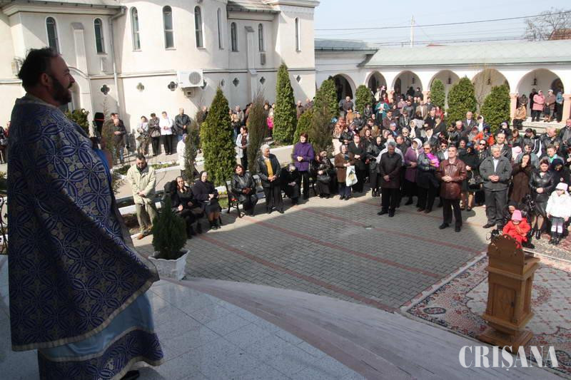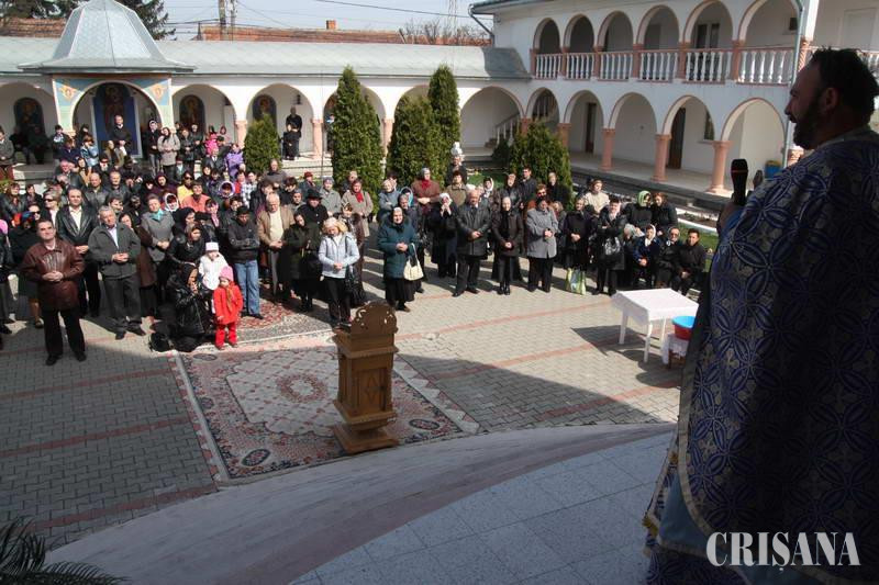 Pe această cale, Maica stareţă Stavrofora Pavelida îi invită pe toţi credincioşii la slujba de sfinţire, cu atât mai mult cu cât este unica ocazie când şi femeile pot intra în Sfântul Altar pentru a săruta Sfânta Masă, Evanghelia, Sfânta Cruce şi sfinţii evanghelişti. La final, va avea loc o agapă frăţească pregătită de soborul maicilor de la Mănăstirea Buna Vestire din Cartierul Episcopia Bihor.