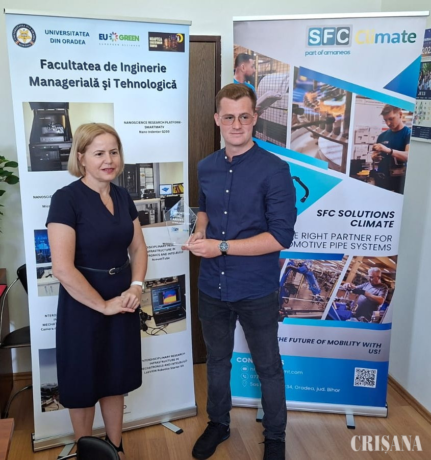 Studenții din anul I, de la Facultatea de Inginerie Managerială și Tehnologică, care au obținut rezultate academice remarcabile, au fost premiați luni, 21 iulie, în cadrul programului „Supporting Future Careers”, derulat de SFC Climate.