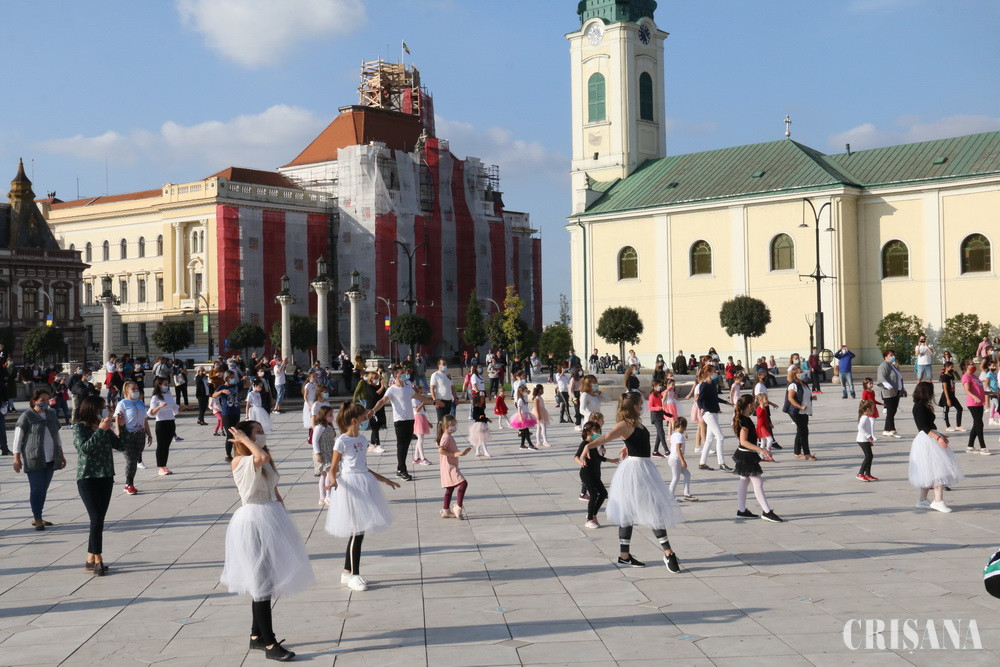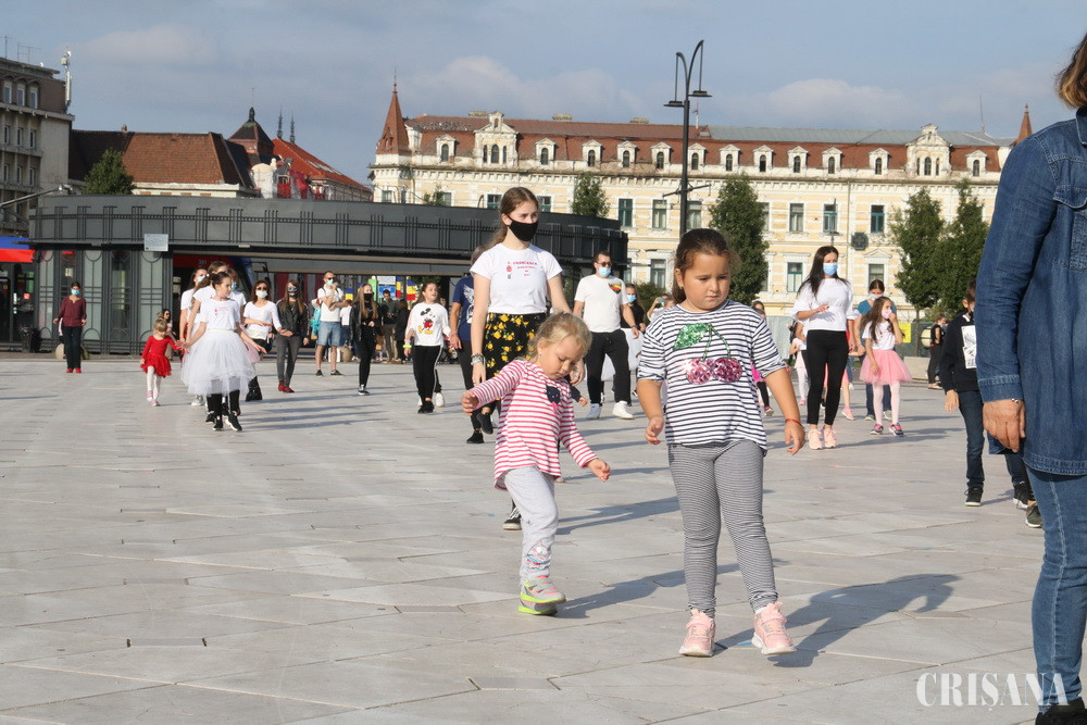 Atmosferă frumoasă sâmbătă, la ora 16.00, în Piața Unirii. 70 de micuți împreună cu părinții, au dansat, în fața unui public de aproximativ 70 de persoane, pe ritmurile cunoscutei melodii Jerusalema.