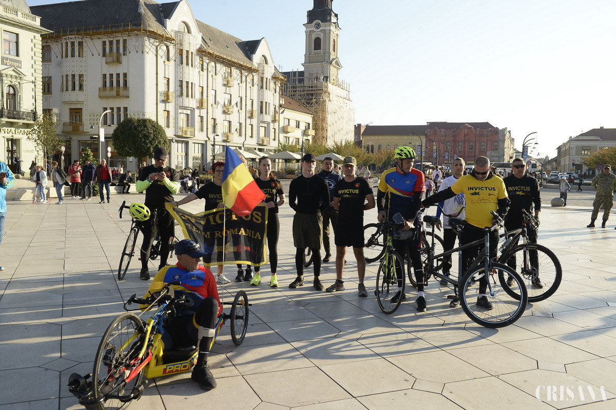 În județul Bihor (tronsonul albastru care cuprinde vestul țării și a plecat din Târgu Jiu), preluarea Stafetei albastre a avut loc în Oradea, Piața Unirii, la Statuia Regelui Ferdinand I, în prezența comandantului Garnizoanei Oradea, locotenent-colonel Vasile–Gabriel Simion, comandant al Centrului 54 Comunicații și Tehnologia Informației, alături de oficialități și alți susținători Invictus, militari și civili, precum și reprezentanți ai presei locale. În data de 24 octombrie, începând cu ora 7.30, la monumental Eroilor Români căzuți în al Doilea Război Mondial, din cimitirul Rulikowski-Municipiul Oradea, se dă startul ultimei porțiuni a Ștafetei Veteranilor Invictus - traseul albastru, unde comandantul Garnizoanei va înmâna ștafeta militarilor răniți, ultramaratonistului Levente Polgar, vicecampionului mondial, locotenent Szoke Laszlo, militar al Centrului 54 Comunicații și Tehnologia Informației, însoțiti de alergători și cicliști, pentru a o duce în alergare, pe traseul Oradea –Carei. Celor 5 militari răniți care parcurg traseul Arad –Carei, maratoniștilor și ultramaratoniștilor care sunt membrii Invictus România, li se vor alătura militar ai Centrului 54 Comunicații și Tehnologia Informație, militari din cadrul Inspectoratului Județean de Jandarmi Bihor și profesori/elevi ai Școlii de Pregătire a Agenților de Frontieră „Avram Iancu”, precum și alți reprezentanți din sistemul de apărare, ordine publică și siguranță națională de la nivelul Municipiului Oradea. Evenimentul se circumscrie ediției a XI-a, care se desfășoară în perioada 4-25 octombrie, fiind organizată de către voluntarii grupului Invictus România. Participanții străbat toate județele țării noastre, purtând în alergare o ștafetă reprezentată de una dintre culorile drapelului tricolor, pe trei trasee: albastru, galben și roșu. Eforturile tuturor voluntarilor de a acoperi peste 3.500 kilometri de alergare și ciclism se vor reuni la Carei, ultimul teritoriu eliberat de Armata României, în 25 octombrie1944, pentru a promova valorile naționale, dar și în semn de respect față de veteranii și eroii României. În data de 25 octombrie, evenimentul va culmina cu organizarea unei ceremonii militare la Monumentul Ostașului Român, la Carei, de Ziua Armatei României, întregind astfel drapelul tricolor.