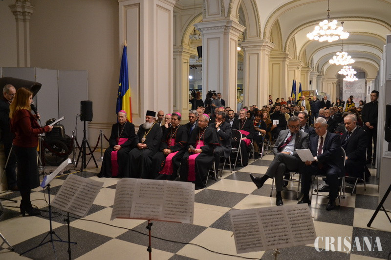 Au mai luat cuvântul Excelența Sa Miguel Maury Buendia nunțiu apostolic la București, Lucian Romaşcanu ministrul Culturii şi Identităţii Naţionale, Sergiu Nistor consilier prezidențial, Departamentul Cultură, Culte şi Centenar în cadrul Administrației Prezidențiale, Preasfințitul Părinte Varlaam Ploieșteanul, Episcop-vicar patriarhal în cadrul Patriarhiei Române, Victor Opaschi secretar de stat în cadrul Secretariatului de Stat pentru Culte, Földesi Ferenc director al Colecțiilor Speciale ale Bibliotecii Naționale Széchényi din Budapesta, respectiv Aurel Chiriac, directorul Muzeului Țării Crișurilor. Toți locutorii au salutat și au exprimat cuvinte de apreciere față de conducătorii celor două instituții pentru extraordinara cooperare, considerând fructuoasă această inițiativă de promovare a pluralismului religios, etnic sau de altă natură prezent pe teritoriul țării. Toate acestea denotă o conviețuire pașnică, sub semnul respectului și al recunoașterii reciproce. Atunci când pacea lipsește, valorile nu sunt expuse ci dimpotrivă, sunt ascunse, păzite - a afirmat secretarul de stat Opaschi. Faptul că o episcopie romano-catolică poate să prezinte publicului larg valorile proprii la București este o expresie a faptului, că între noi domnește pacea, statul român asigură tuturor, inclusiv minorităților religioase și etnice condițiile necesare pentru a se putea desfășura și a-și putea păstra și cultiva identitatea așa cum se cuvine. Reprezentanții instituțiilor partenere - Földesi Ferenc respectiv Aurel Chiriac - au ținut șă sublinieze în alocuțiunile domniilor sale importanța colaborării pe plan cultural, colaborare care nu cunoaște limite, granițe, ci este îndreptată spre binele comun al tuturor.