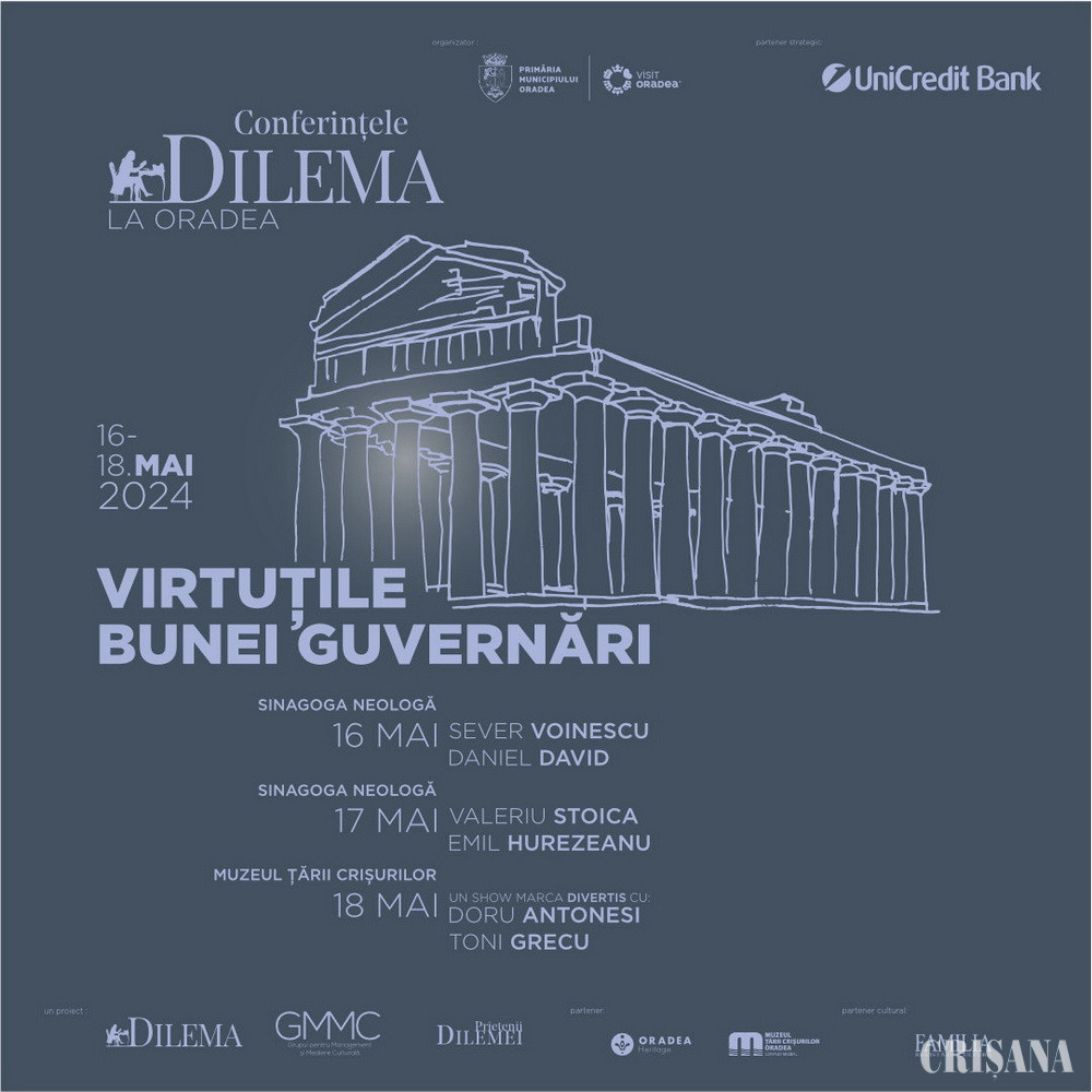 Dacă anul trecut, tema propusă la Oradea de Conferinţele Dilema a fost „Ce-au fost și ce-au ajuns. Despre mărire și decădere în istorie”, în acest an organizatorii au decis să meargă pe o temă cum nu se poate mai actuală: „Virtuţile bunei guvernări”.