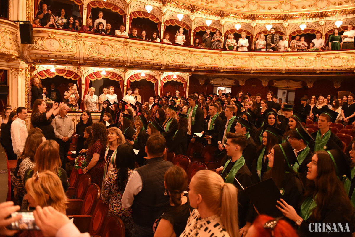 Zi unică, încărcată de mari emoții, marți, 30 mai, când elevii claselor terminale de la Liceul de Arte din Oradea au umplut sala Teatrului de Stat, cu flori în mâini, lacrimi în ochi și speranță în suflete. Le-au fost alături, la emoționanta festivitate, părinți, bunici, frați și surori, tinerii absolvenți luându-și rămas bun de la toți cei care le-au călăuzit pașii de-a lungul celor patru ani de liceu. Festivitatea, prezidată de doamna director Mihaela Bondor, alături de doamna director adjunct Gabriela Nagy, a început cu un scurt discurs din partea direcțiunii, felicitări adresate atât elevilor absolvenți, căt și diriginților acestora, Hulber Cătălin (clasa a XII-a A), Balint Cosmina (clasa a XII-a B) și Tivadar Marius (clasa a XII-a C), Catedrele de arte vizuale și muzică fiind reprezentate de doamna prof. Claudia Peter și dna prof. Alexandra Ionoi. Pe lângă premiile menite să valideze eforturile celor mai buni elevi ai clasei, au fost acordate premii de excelență celor mai talentați tineri, după cum urmează: Niculaș Daria-Nicole, premiul de excelență pentru rezultate deosebite de-a lungul anilor de liceu, obținute la diferite concursuri și olimpiade, coordonată de prof. dr. Ligia Cristea, și anume Medalia de Argint obținută la Concursul Online de Lingvistică 2021 - Faza Națională, Certificat de Participare la Third Asia Pacific Linguistics Olympiad. De asemenea, au fost premii de excelență în muzică acordate elevilor Chișe Andreea, Costin Albert, Iuhas Alex, Mariș Hinsu Ioan Florin, Tiponuț Naomi, Zbârcea Dalia; Istoria artelor - Catrișcău Răzvan, Design vestimentar - Csankovnsky Dominik, Erdei Mario; pictură - Turkalj Anna și Andrei Teodor; Grafică - Mihai Alma; Arhitectură și Design - Ștefan Paul, Vlad Denisa și Ciorba Iasmina.
