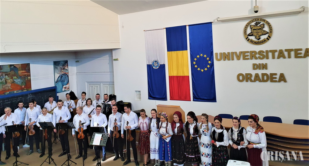 Ieri, la Universitatea din Oradea, în Aula Magna, a avut loc o manifestare dedicată Zilei Naționale a României. Programul artistic a fost susținut de Ansamblul Folcloric al Facultății de Arte, coordonat de conf. univ. dr. Oana Lianu.