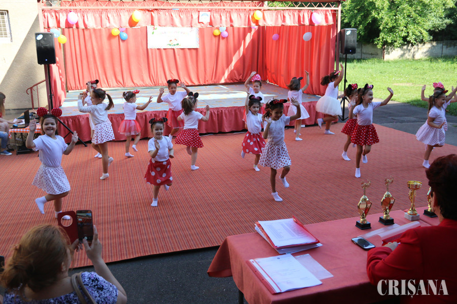Dacă meciul de fotbal între băieţii grădiniţelor înscrise a avut loc în 24 mai, astăzi, 25 mai, a fost rândul dansatorilor să intre în scenă. Pregătiţi de educatoare şi de profesoarele de dans şi de gimnastică, micuţii au prezentat coregrafii vesele şi antrenante. De la dansuri populare, germane, maghiare, irlandeze sau româneşti, până la valsuri, tangouri, cha cha cha, micuţii au ilustrat Dansul Ploii, Minnie Mouse dance, The Tango, Hora Mămăruţelor, Dansul Fluturaşilor, Dansul Ursuleţilor, Happy Dance, Clownii veseli, tarzan, sau dans ţigănesc.