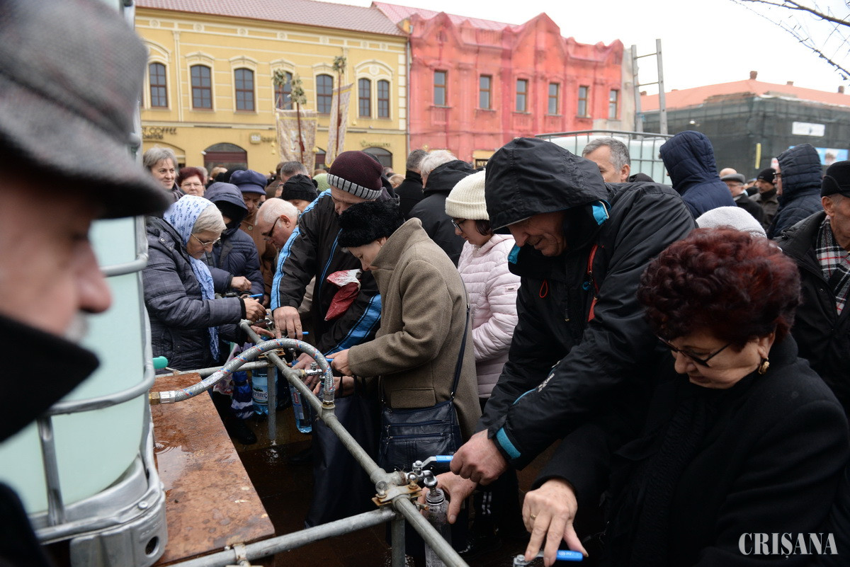 Slujba de Bobotează a fost oficiată de PS Sa Virgil Bercea, episcopul greco-catolic de Oradea, înconjurat de un sobor de preoţi. În jur de 1.300 de litri de apă s-au sfinţit pentru credincioşii care au venit în număr frumos la acest lăcaș de cult. „O parte din Agheasma Mare a fost oferită credincioșilor în sticle, iar cine și-a adus recipient curat de acasă, s-a putut servi din ciubăr”, ne-a spus părintele Ovidiu Duma, parohul Catedralei „Sfântul Nicolae”.