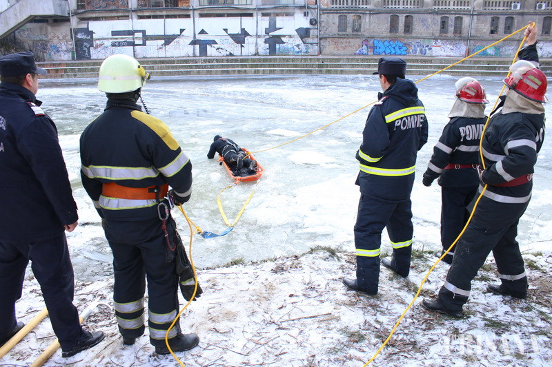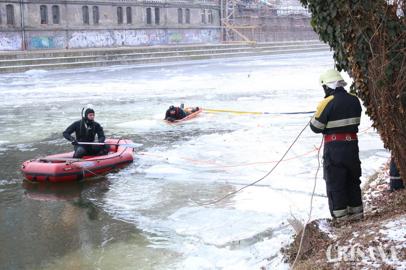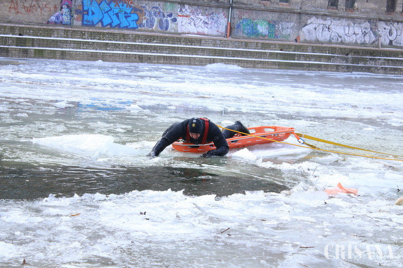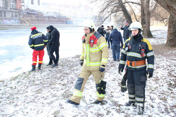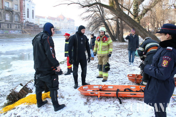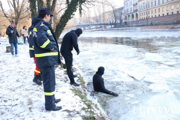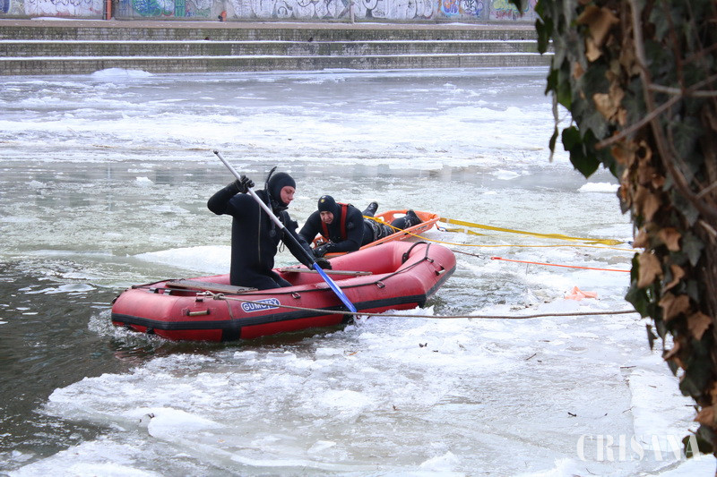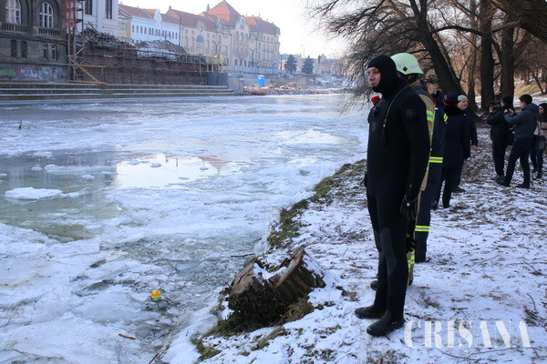 Mai multe echipaje de salvatori din cadrul Inspectoratului pentru Situaţii de Urgenţă „Crişana” au încercat, ieri, să găsească un bărbat înghiţit de apele Crişului Repede în zona centrală a municipiului Oradea. Scafandrii au intrat în apa îngheţată, însă, din cauza temperaturii foarte scăzute şi a stratului de gheaţă de aproape 30 de centimetri, nu au reuşit să găsească nimic.