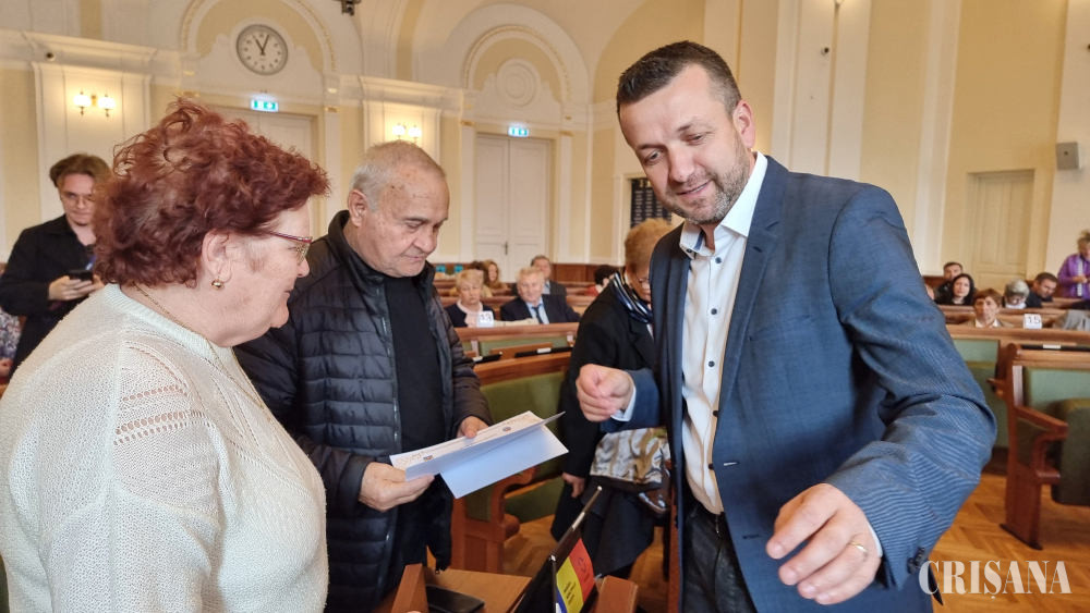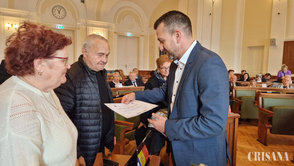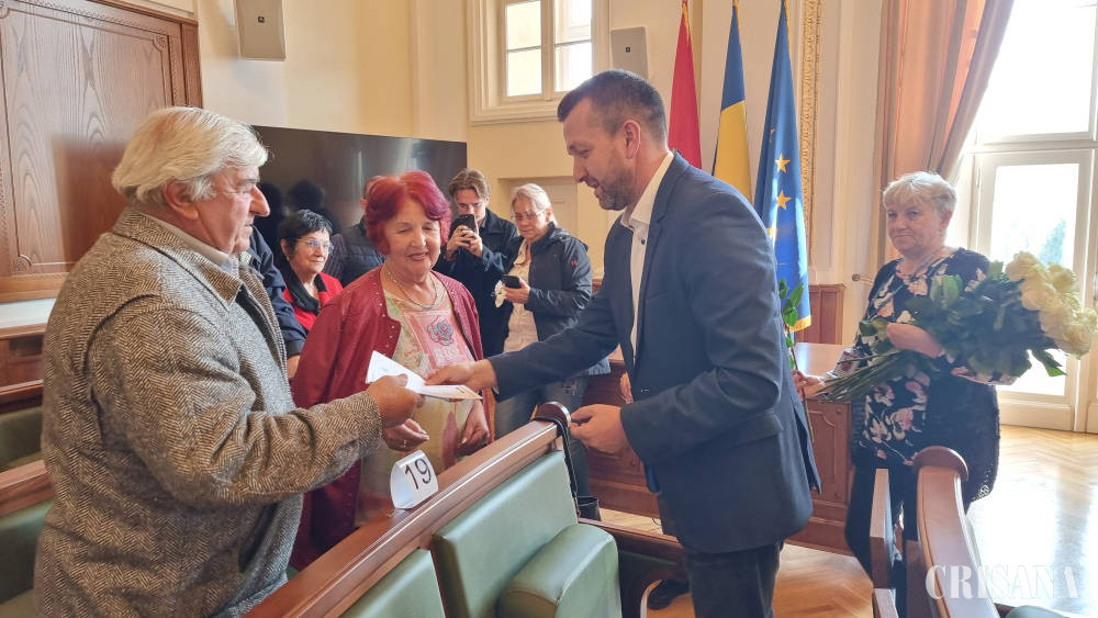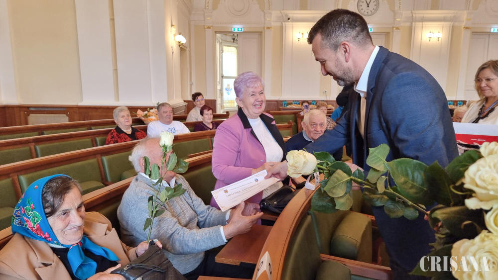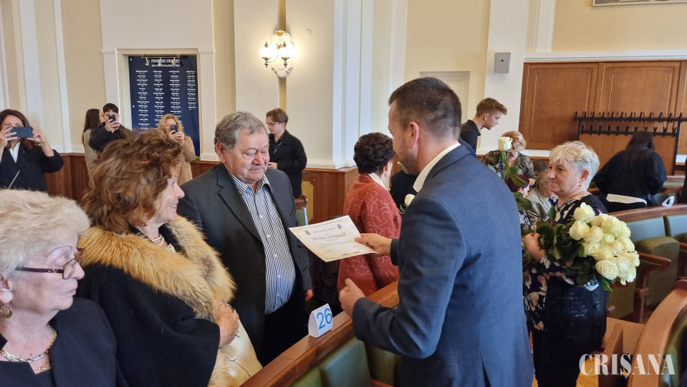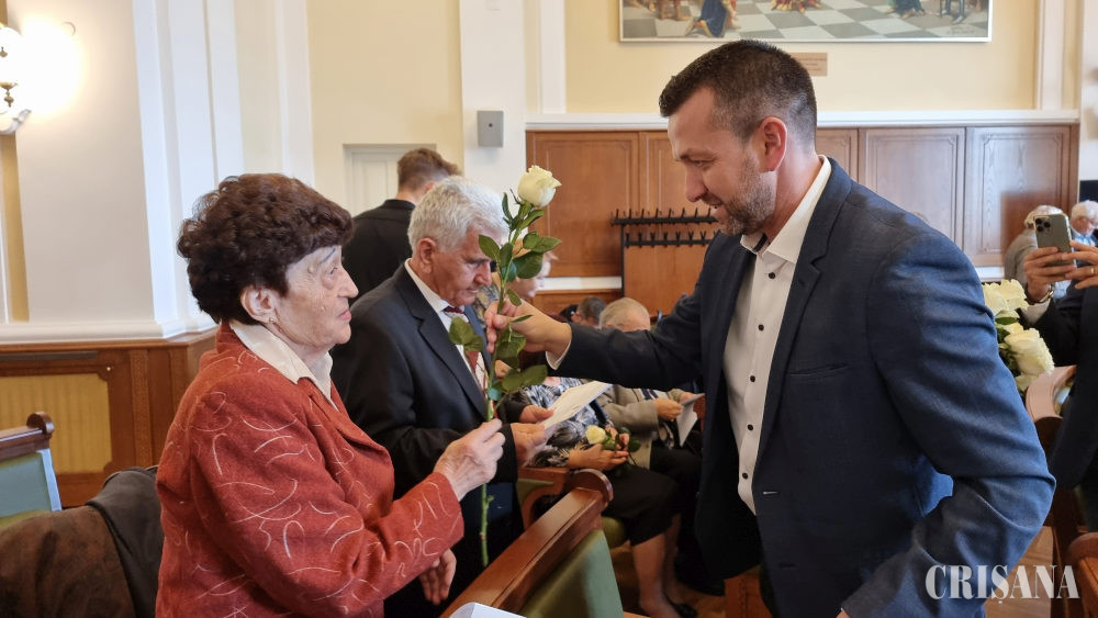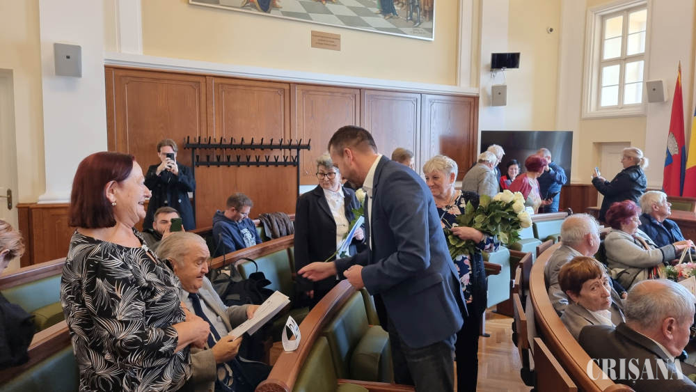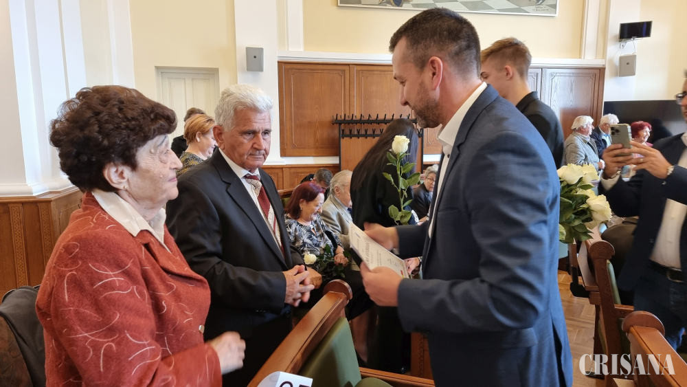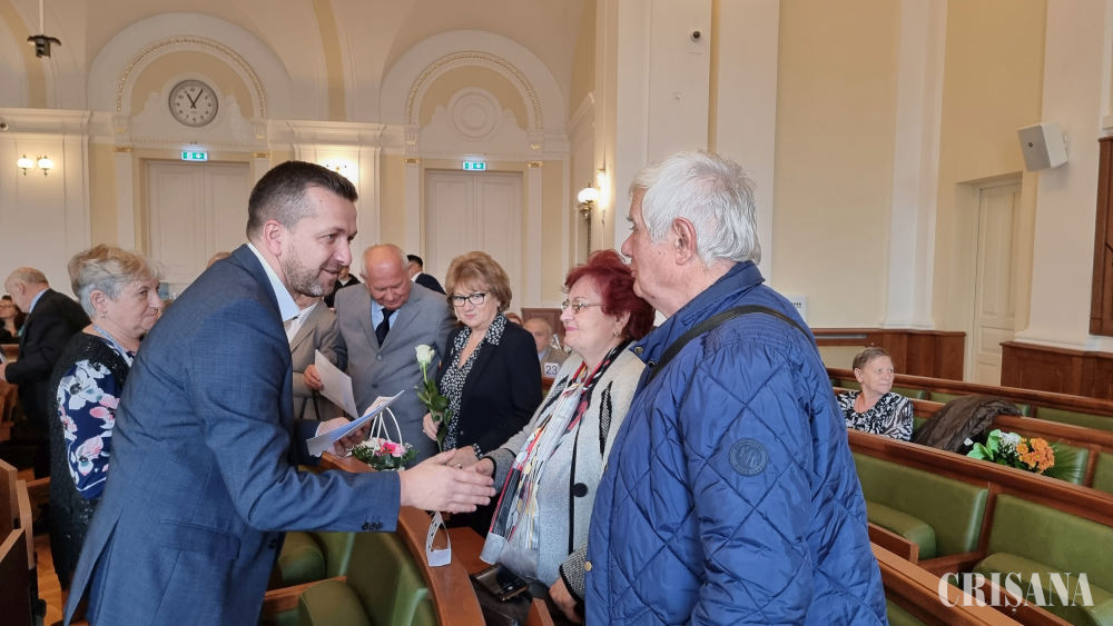 Primarul Florin Birta a felicitat miercuri, 30 octombrie, cele 34 de cupluri prezente în Sala Traian Moșoiu a Primăriei Oradea, la evenimentul „Nunta de Aur”.