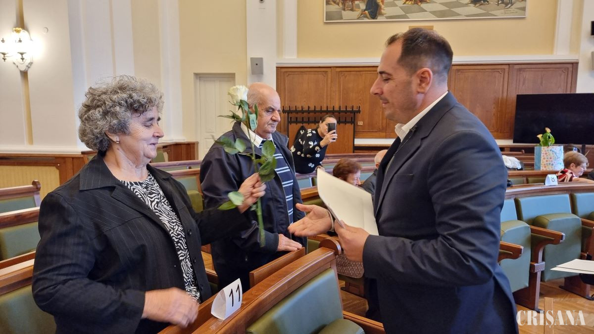 În Sala Mare a Primăriei Oradea, 24 de cupluri au fost sărbătorite miercuri, 1 octombrie, cu ocazia celei de-a zecea ediţii din acest an a evenimentului „Nunta de Aur”.