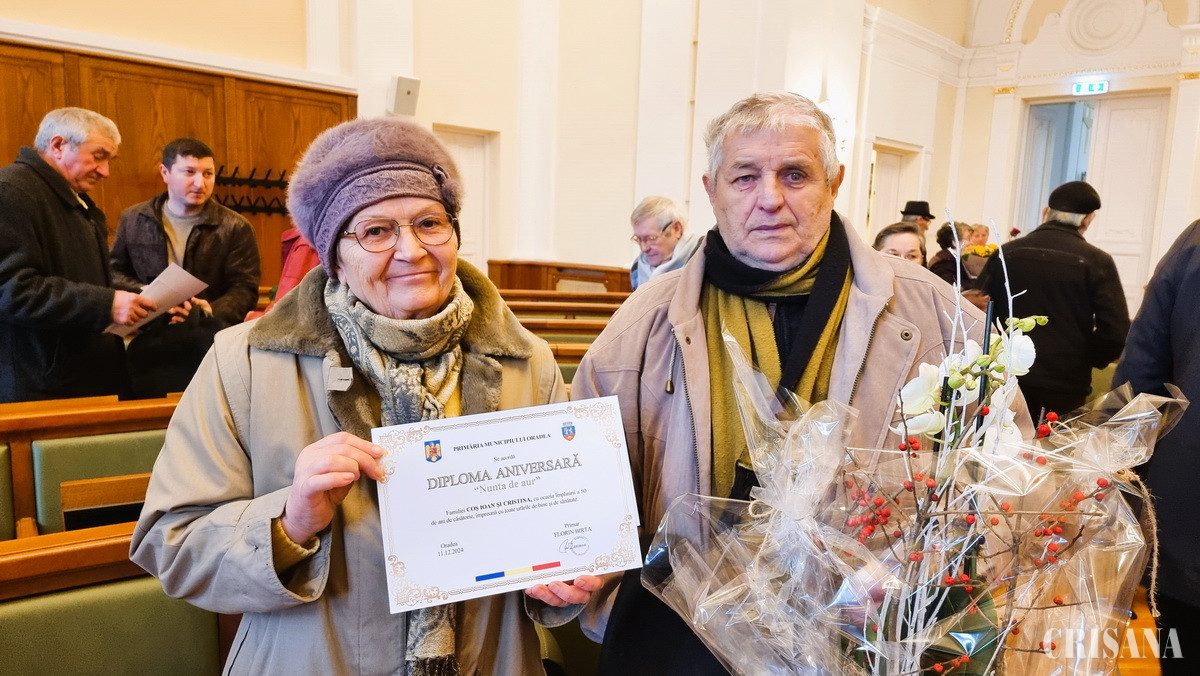 „Cincizeci de ani de căsătorie reprezintă un lucru extraordinar mai ales în zilele noastre. Cincizeci de ani echivalează cu o viață de om și suntem aici pentru a vă mulțumi pentru exemplul pe care ni-l oferiți. Sunt convins că au fost ani cu perioade frumoase sau mai puțin bune, ani cu bucurii sau necazuri, dar ceea ce este important este că ați rămas împreună. Vă suntem recunoscători că sunteți azi în viețile noastre ca părinți sau bunici, ca modele de familie unită, iar eu vă felicit atât în numele meu personal, cât și al Primăriei Oradea și al Consiliului Local Oradea și vă doresc multă sănătate și tot binele din lume alături de toți cei dragi dumneavoastră”, a menţionat primarul Florin Birta.