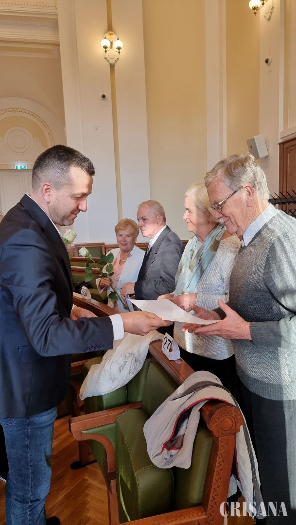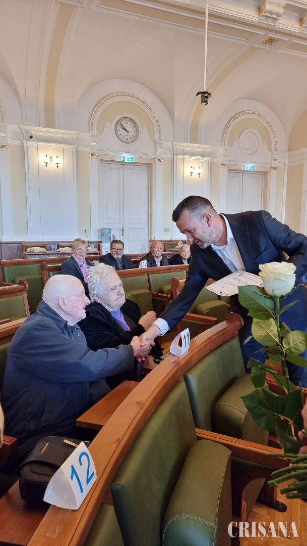 Viceprimarul Teofil Filimon a felicitat miercuri, 21 mai, 30 de cupluri prezente în Sala Mare a Primăriei Oradea, cu ocazia „Nunții de Aur”.