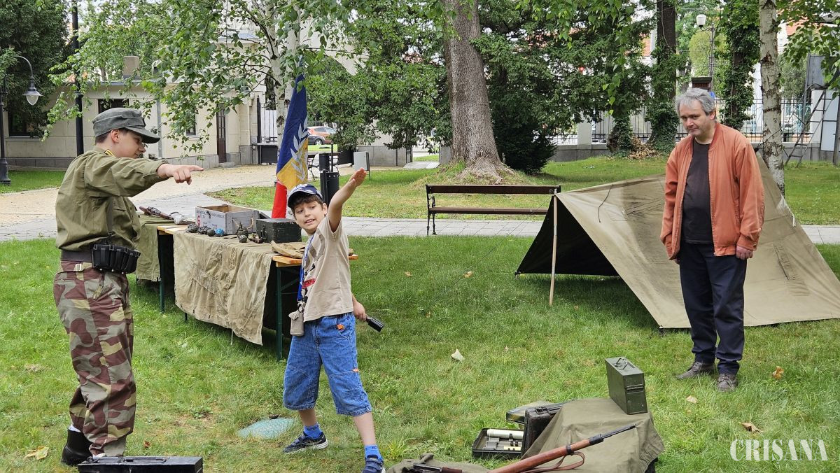 În curtea Muzeului Țării Crișurilor, micuții au putut intra în pielea soldaților, au aflat lucruri interesante despre arme și muniții, au putut să arunce o grenadă sau să tragă la țintă. Toate acestea în cadrul unei expoziții militare interactive organizată de grupului de reconstituire istorică „Străjerii Crișanei” în colaborare cu Muzeul Țării Crișurilor Oradea – Complex Muzeal și Muzeul Militar Național „Regele Ferdinand I” filiala Oradea.