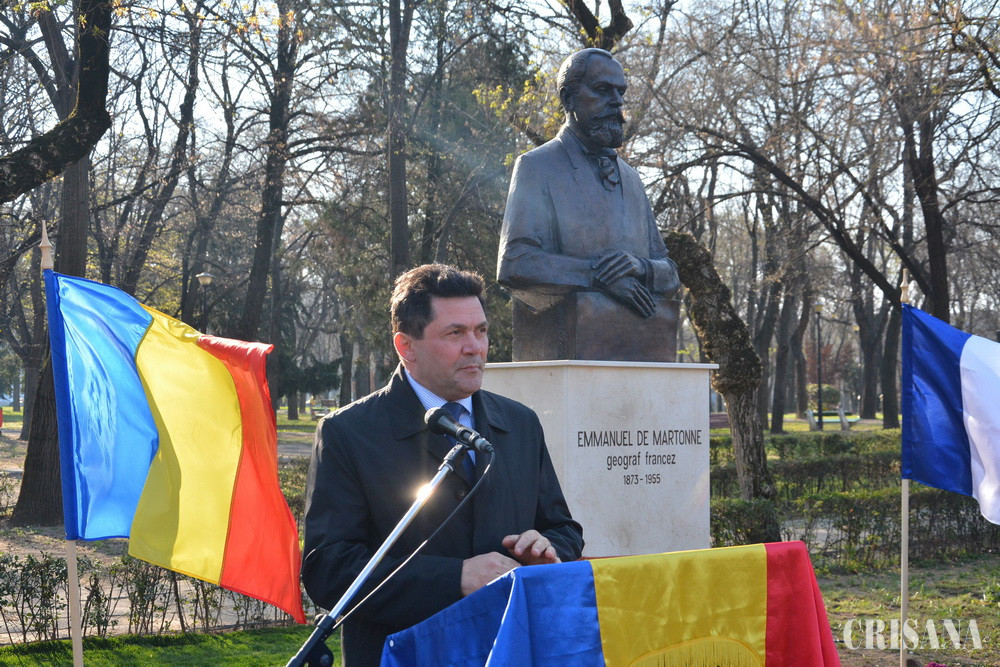 Luni, 1 aprilie, în Parcul 1 Decembrie din Oradea, a avut loc ceremonia de dezvelire a bustului dedicat savantului francez Emmanuel de Martonne, cel care a fost cel mai important avocat al României Mari, la conferinţa de pace de la Paris.