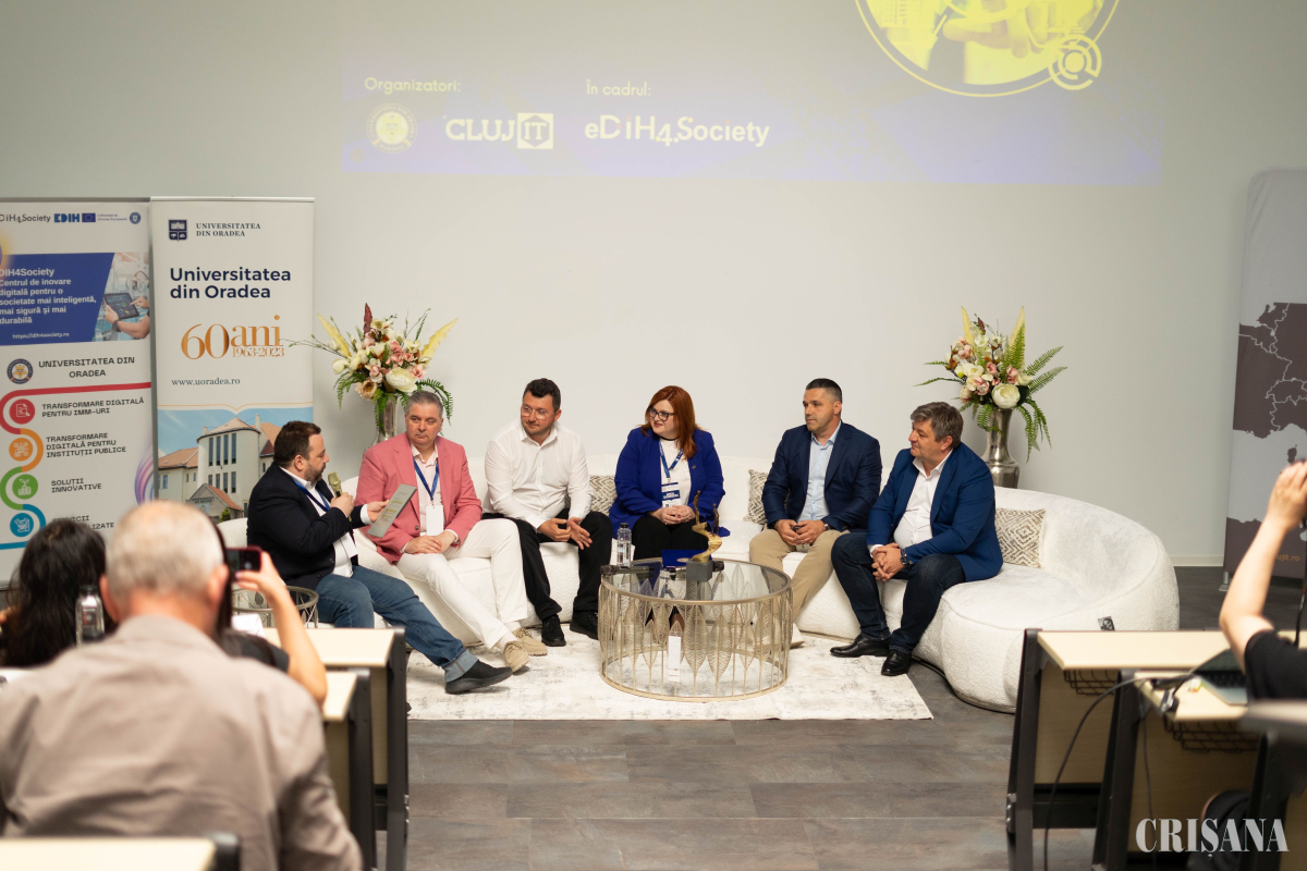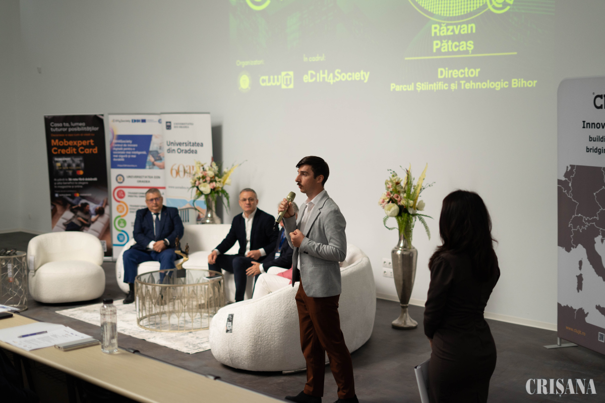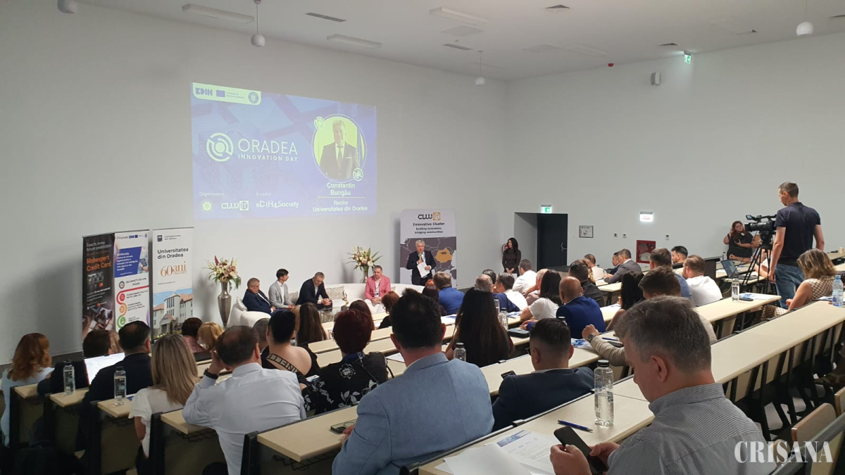 Oradea Innovation Day a reunit peste 150 de participanți din mediul de afaceri, instituții publice, mediul socio-economic și universitar. Agenda evenimentului a inclus două paneluri tematice care au abordat transformarea digitală a serviciilor publice, revoluția digitală în sectorul economic, precum și două sesiuni de brokeraj în care s-au prezentat soluții concrete pentru accelerarea tranziției digitale și sustenabile atât în mediul public, cât și în cel privat.