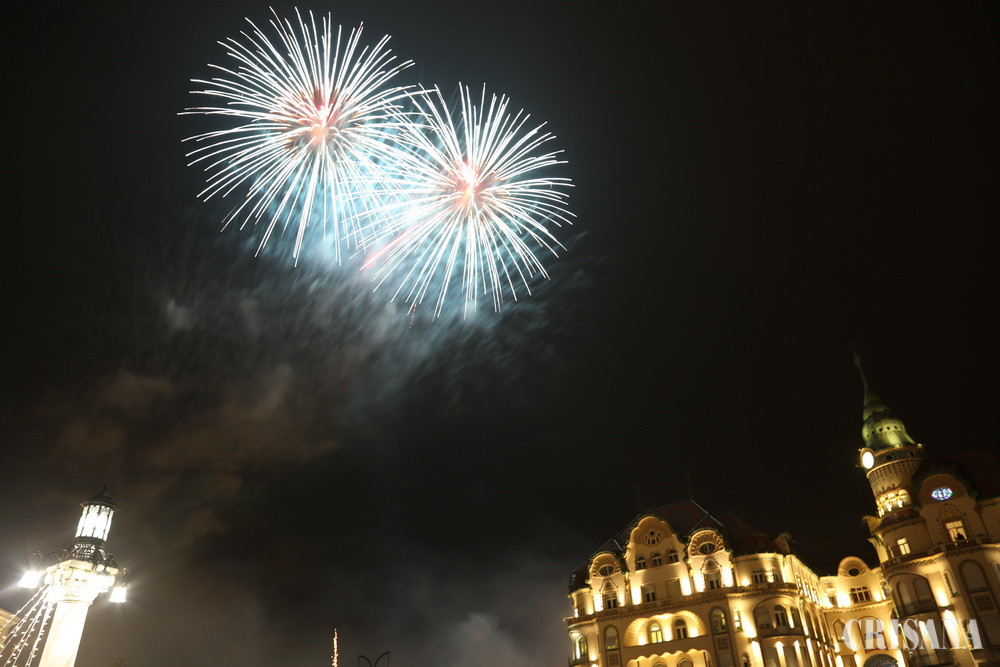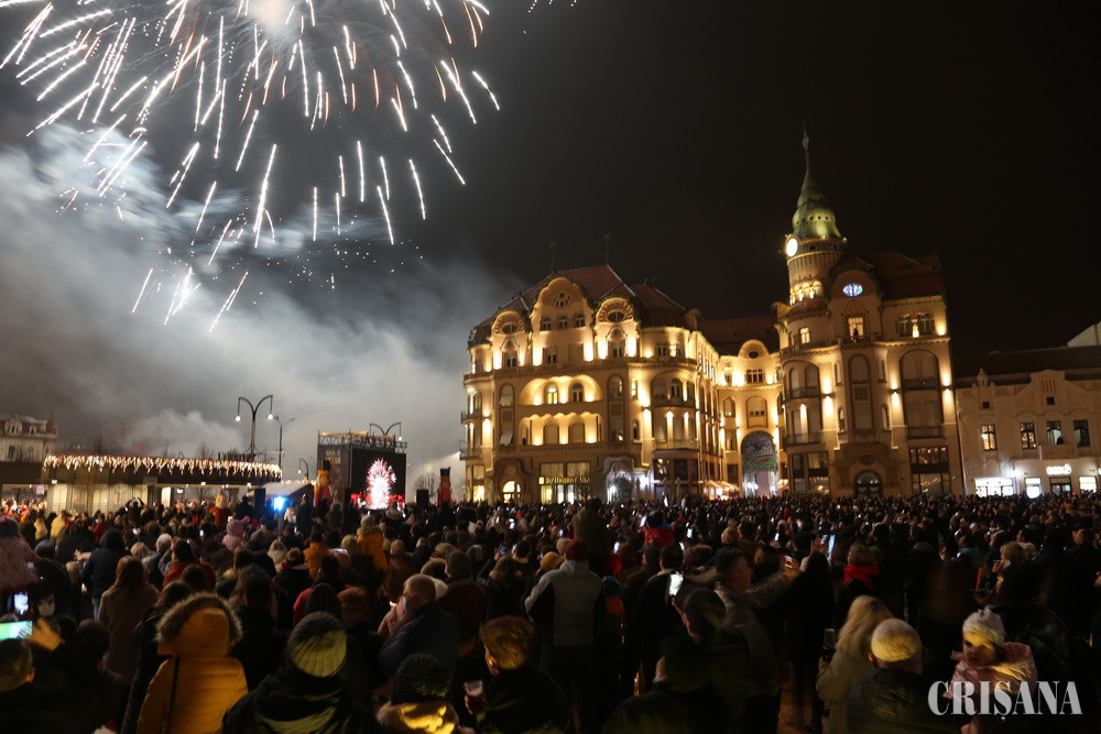 După o pauză de un an, Primăria Municipiului Oradea i-a invitat pe toți cei care și-au dorit să petreacă trecerea dintre ani în aer liber, în Piața Unirii, unde a avut loc un foc de artificii.