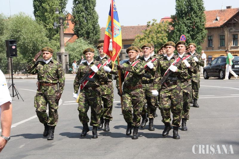 Aşa cum fusese anunţat de organizatori, programul a început la ora 12.00 fix, cu întâmpinarea oficialităţilor, prezentarea onorului, salutarea drapelului de luptă şi ocuparea locului în dispozitiv, urmate de rugă şi închinare pentru poporul român, oficiate de către preotul militar al garnizoanei Mircea Ioniţă. În continuare, a avut loc o alocuţiune privind simbolistica versurilor Imnului Naţional al României, scurt istoric şi semnificaţii, rostite de Claudiu Pop, prefectul judeţului Bihor şi de prof. univ. dr. Ion Zainea. Prefectul Claudiu Pop şi-a încheiat sugestiv discursul cu ultima strofă a Imnului - „Preoţi, cu cruce-n frunte! căci oastea e creştină, / Deviza-i libertate şi scopul ei preasfânt. / Murim mai bine-n luptă, cu glorie deplină, / Decât să fim sclavi iarăşi în vechiul nost' pământ!", urându-le „La mulţi ani" şi onoare tuturor celor prezenţi. A urmat un spectacol cu tematică adecvată, susţinut de soliste ale Ansamblului Artistic Profesionist „Crişana", după care întreaga asistenţă a interpretat Imnul Naţional al României. Programul s-a încheiat cu defilarea gărzii de onoare pe muzica fanfarei militare a Şcolii de Pregătire a Agenţilor Poliţiei de Frontieră "Avram Iancu". Printre oficialităţile prezente la eveniment s-au numărat: primarul Ilie Bolojan, prefectul Claudiu Pop, subprefectul Cristian Bitea, Ioan Mang, vicepreşedintele Consiliului Judeţean Bihor, Liviu Popa, şeful Inspectoratului de Poliţie Bihor, precum şi Preasfinţia Sa Sofronie Drincec, episcopul ortodox al Oradiei.