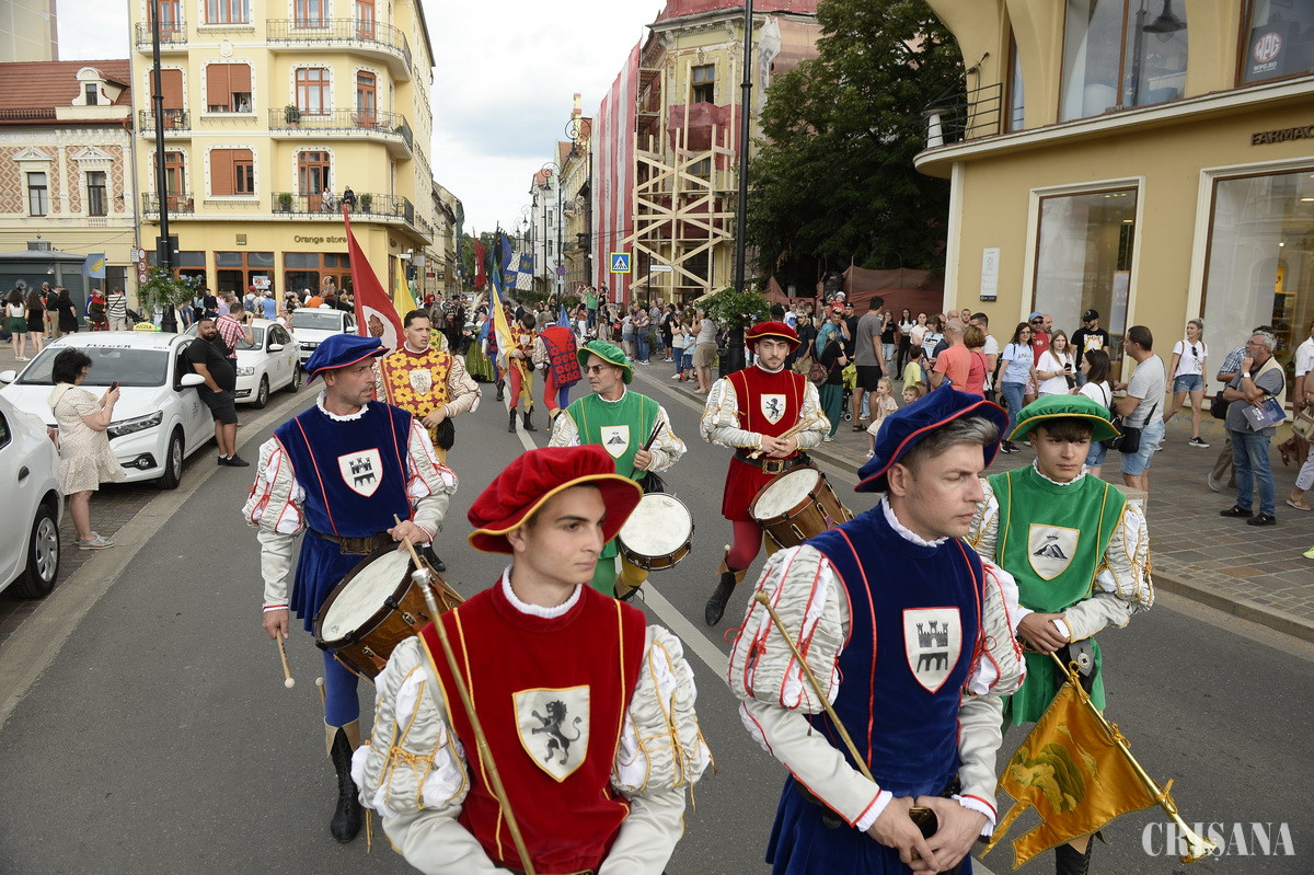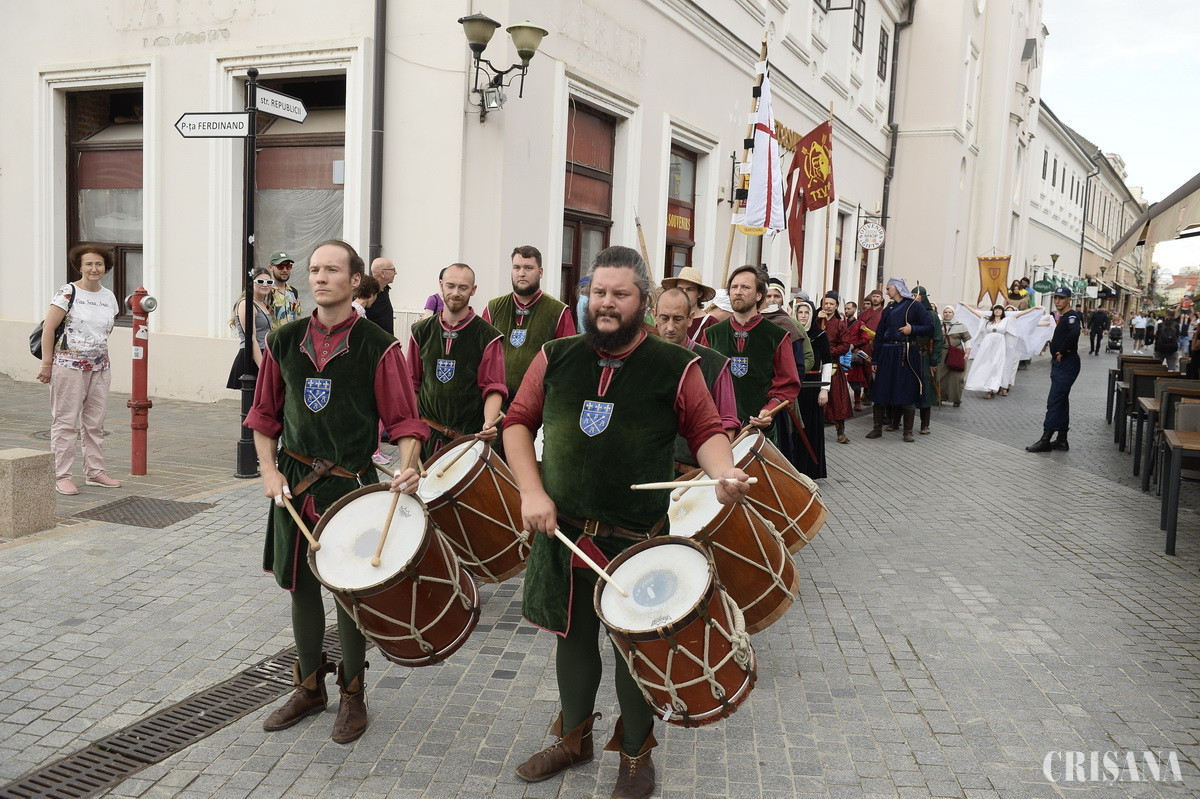 Festivalul Medieval Oradea a fost deschis, oficial, joi, cu o paradă spectaculoasă a cavalerilor, care a pornit de la Centrul Comercial Crișul și a ajuns în Piața Unirii. Aici a avut loc o paradă de modă medievală și un spectacol cu spadasini.