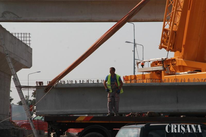Pasajul de pe Calea Aradului, la faza de montare a grinzilor - Doar 50% e finalizat